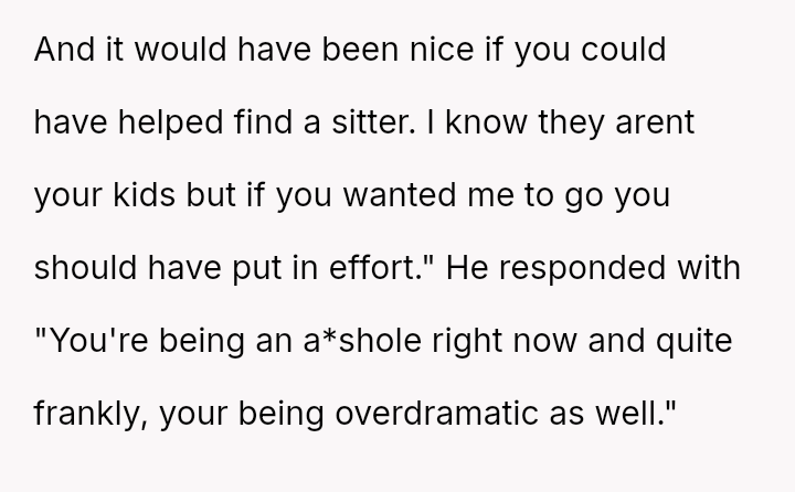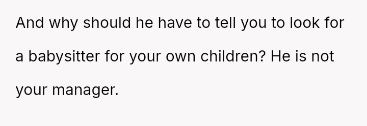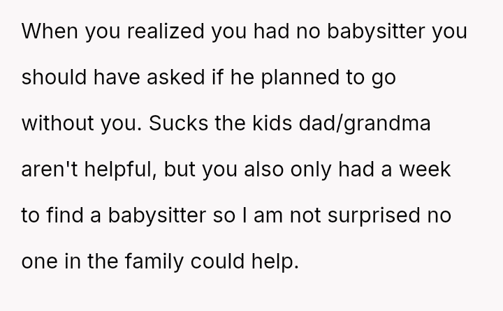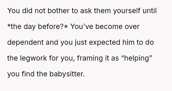 But as the weight of finding a babysitter crushed her hopes, she braced herself for disappointment, a*suming he would stand with her in this struggle.