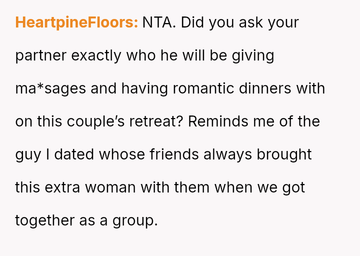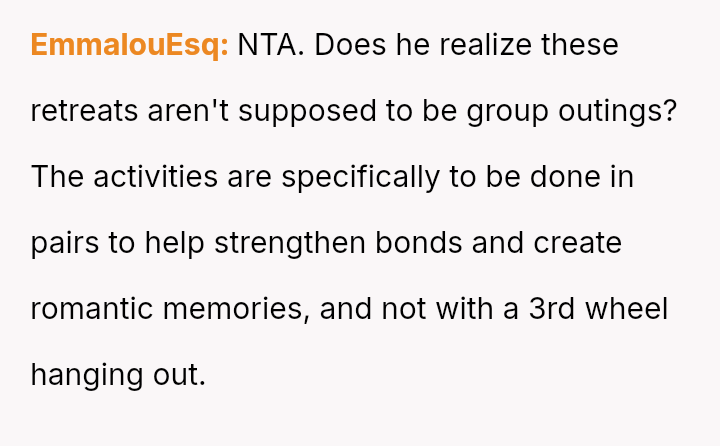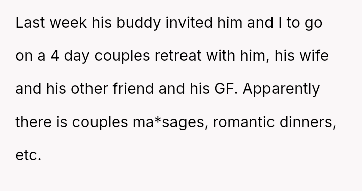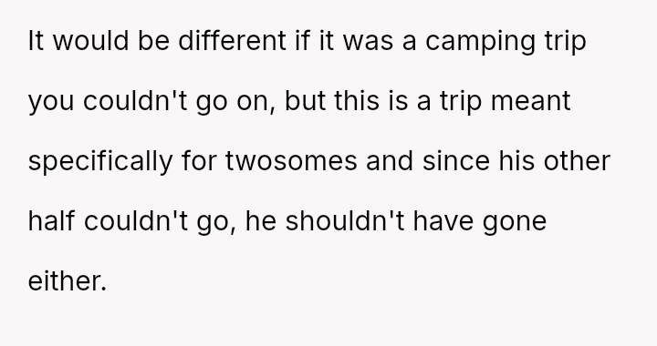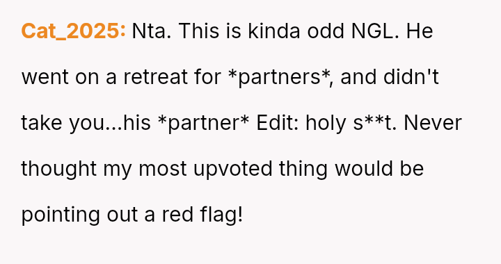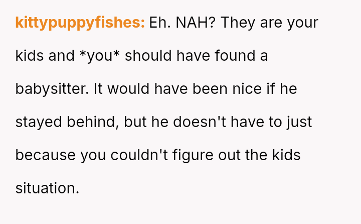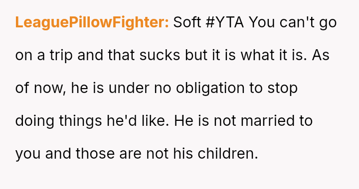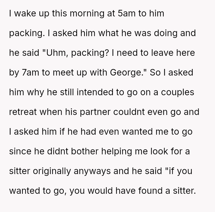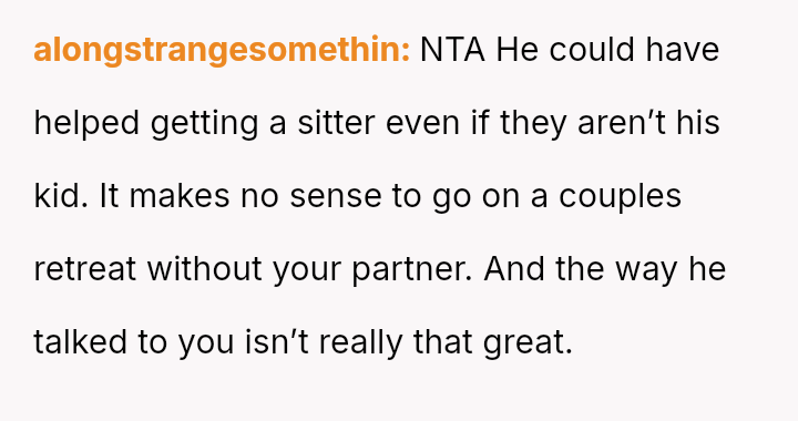 The original poster (OP) is clearly upset because her boyfriend chose to attend a planned couples retreat alone after she was unable to secure childcare for her two children.