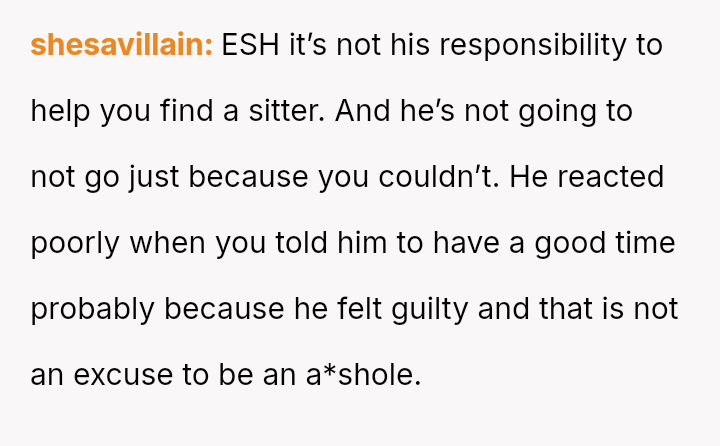 The central conflict lies in the differing expectations regarding shared responsibility; the OP believed his attendance was contingent on hers, while the boyfriend emphasized her sole responsibility for finding a sitter, dismissing her feelings about his lack of support.