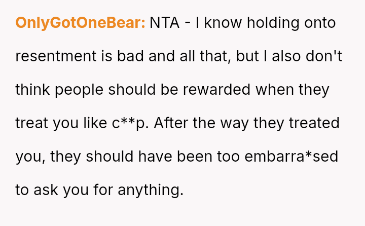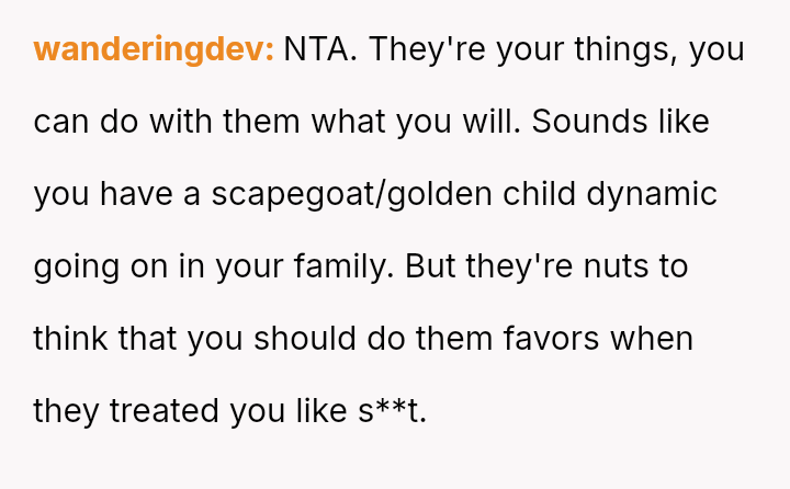 The central conflict rests on whether the OP is justified in protecting her emotional boundaries and refusing to enable the perceived favoritism, or if her refusal is an act of petty resentment damaging current familial relations.