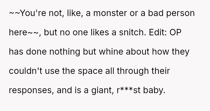 When residents break clear community rules, is reporting the v***ation to management a responsible act of community maintenance, or does reporting a situation that leads to severe consequences like eviction cross a line into overreach?