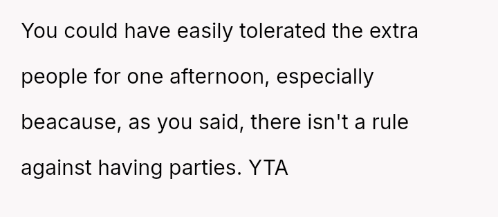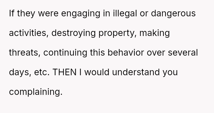 The original poster (OP) faced a situation where a large, rule-breaking gathering overwhelmed a shared community space, leading them to report the activity to management.