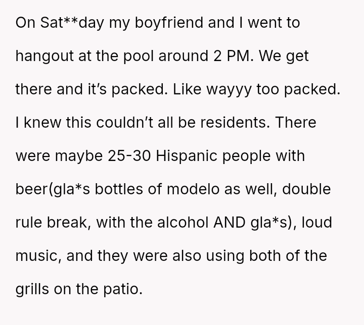 In the quiet hum of a typical Sat**day afternoon, a young man and his boyfriend sought solace by the apartment pool, only to find it overwhelmed by an unexpected crowd.