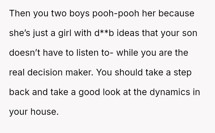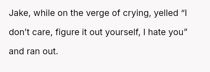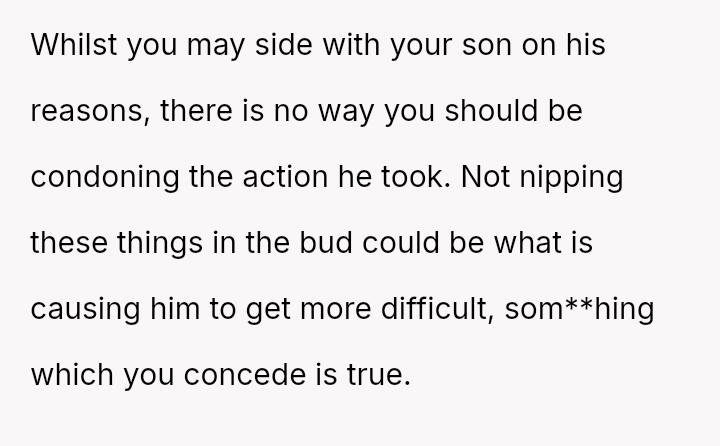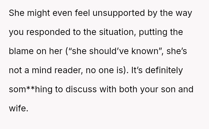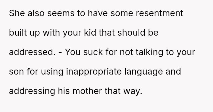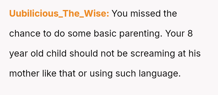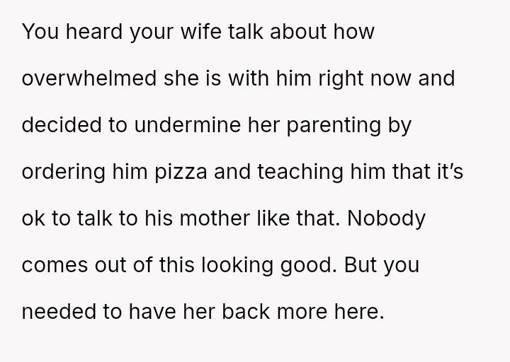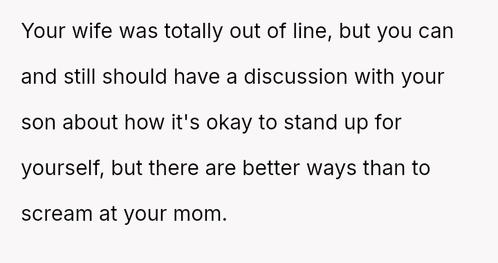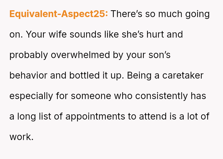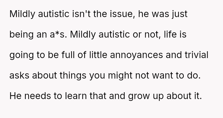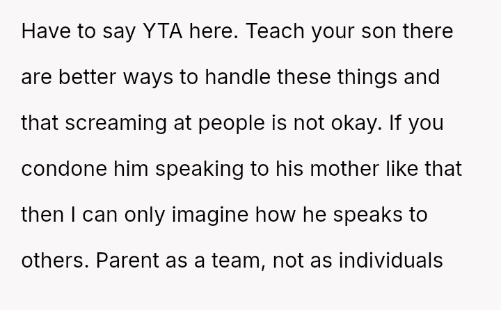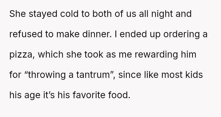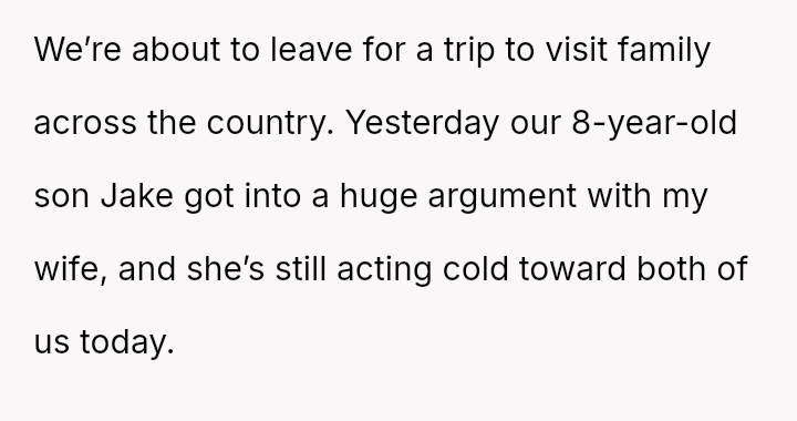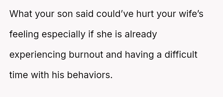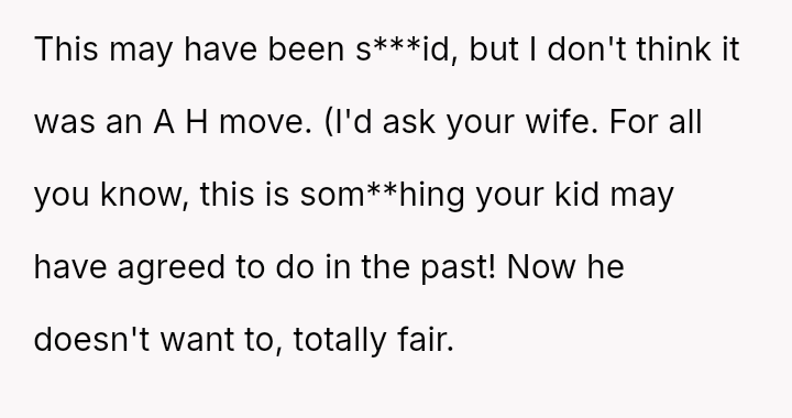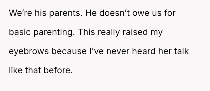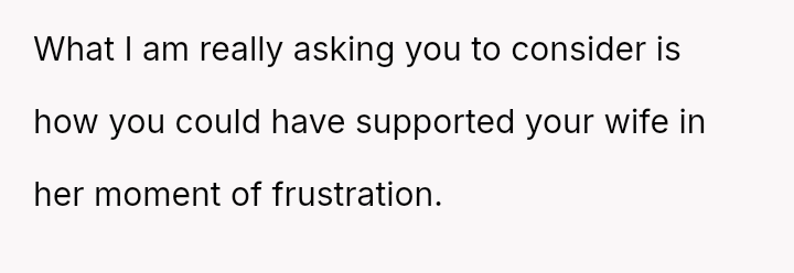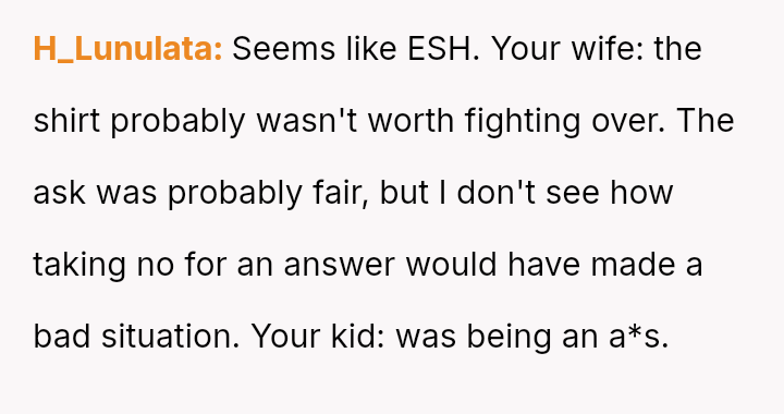 The wife, however, views the son's reaction as defiance deserving of punishment, framing the request as a minor favor compared to the effort they put into parenting.