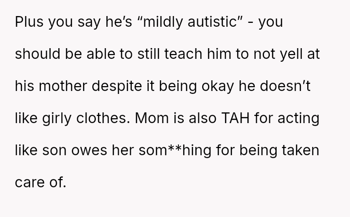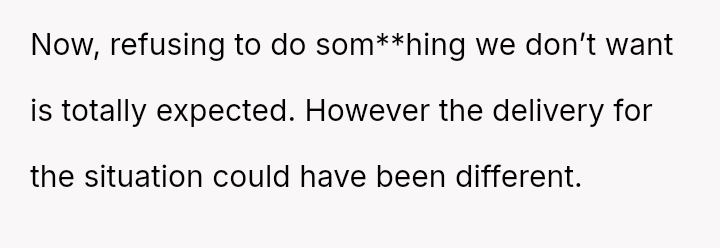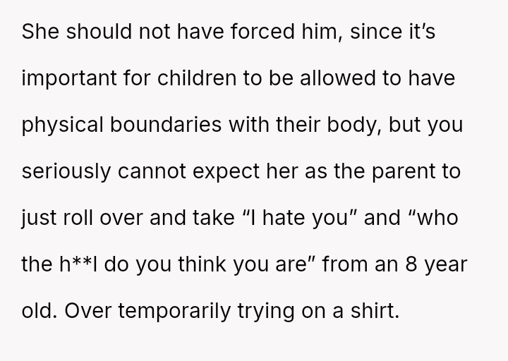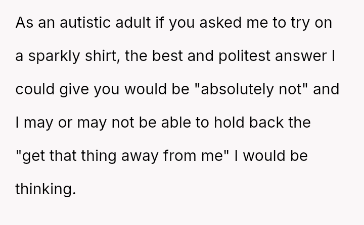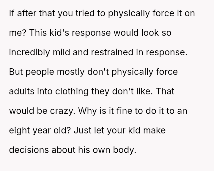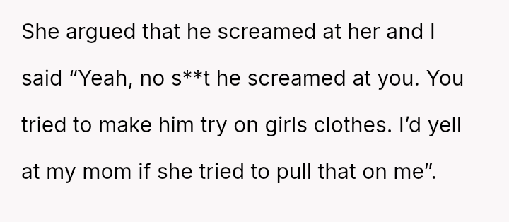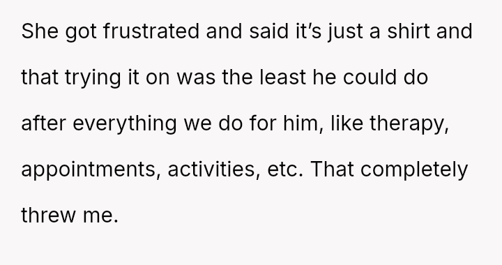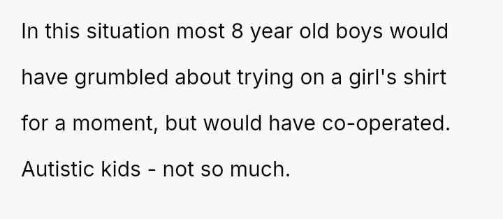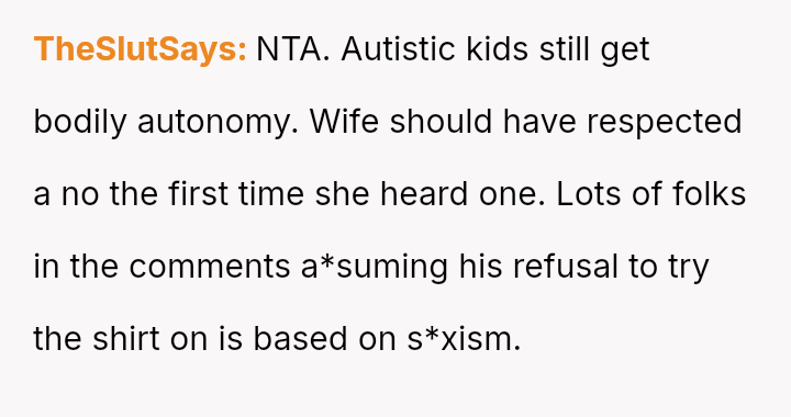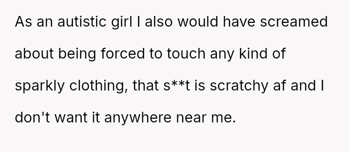 Given the strong opposing views on appropriate parenting responses, boundary setting, and recognizing the child's emotional triggers—especially regarding gender expression and sensory issues—the central question remains: When a parent's request directly conflicts with a child's deeply held boundaries or sensitivities (exacerbated by neurodiversity), should the parent prioritize compliance through insistence or de-escalation and later discussion, and is the other parent justified in shutting down and refusing to cooperate over a perceived disciplinary failure?
