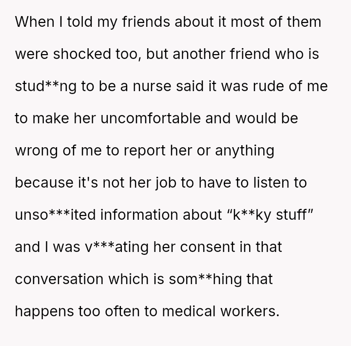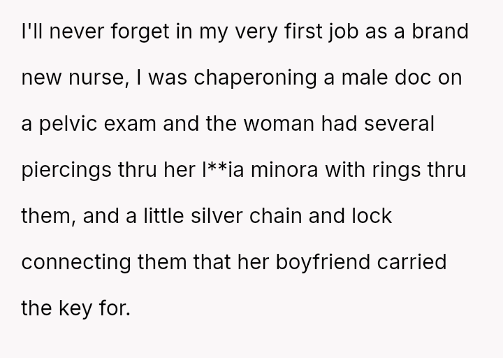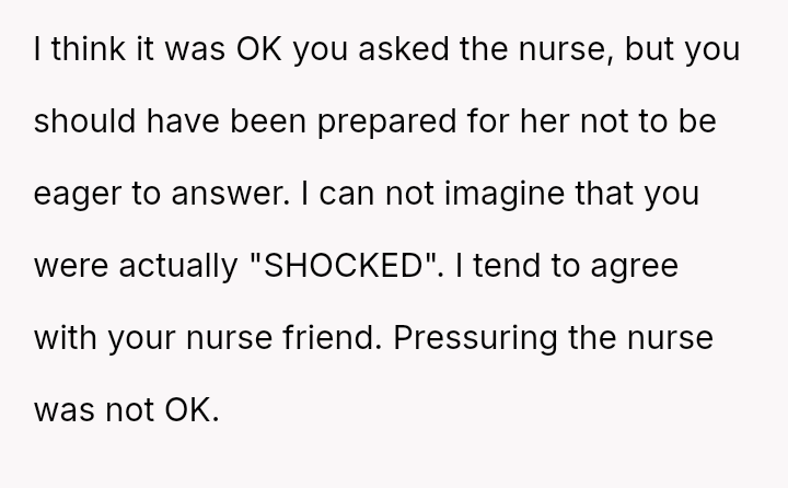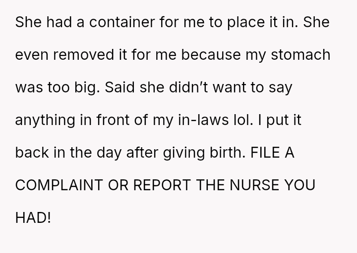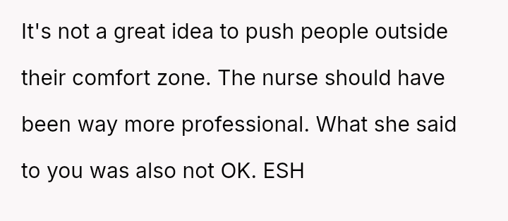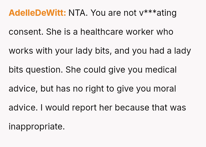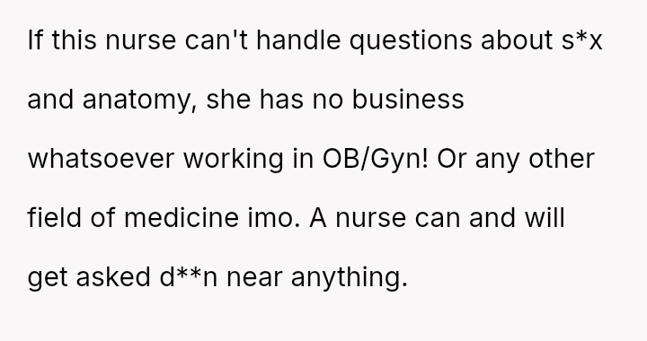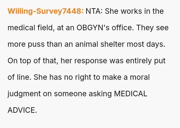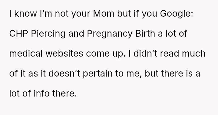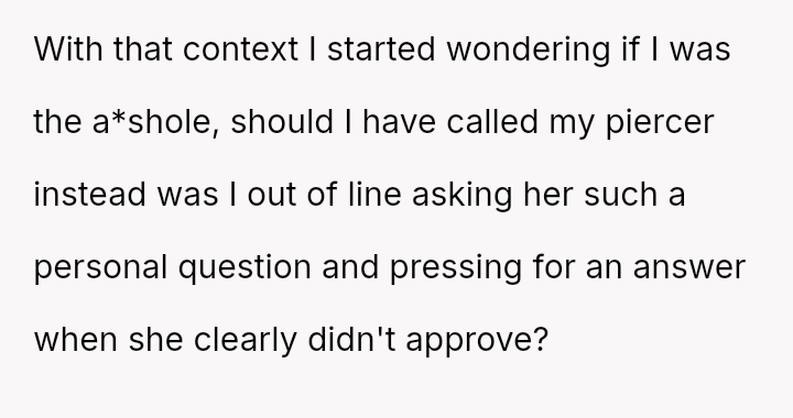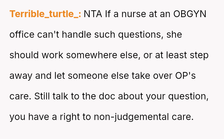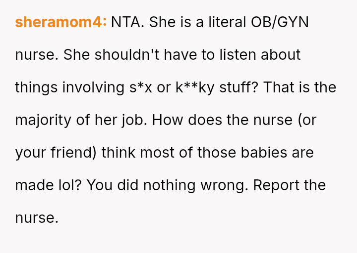 The original poster (OP) faced an unexpected and highly judgmental response from a nurse regarding a personal medical question about a body piercing during pregnancy.
