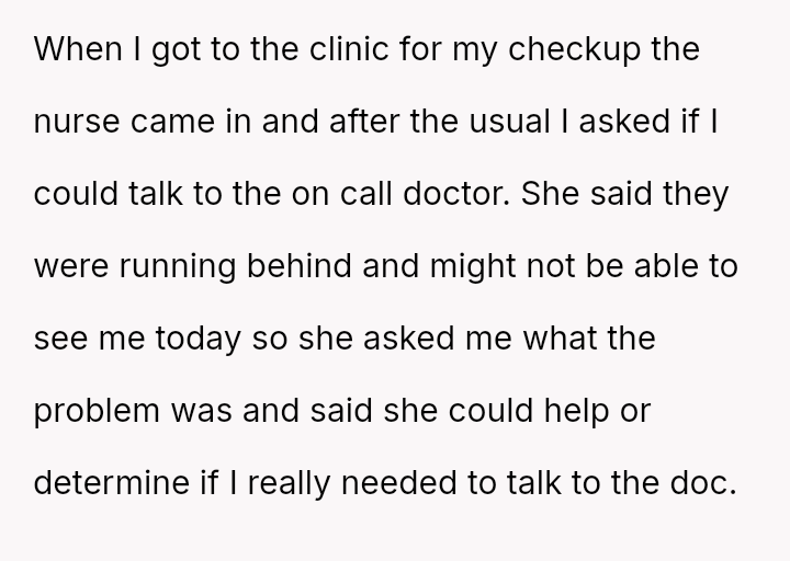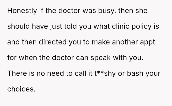 The absence of her trusted obgyn, away on vacation, left her grasping for rea*surance in an unfamiliar clinical space where every question felt urgent and personal.
