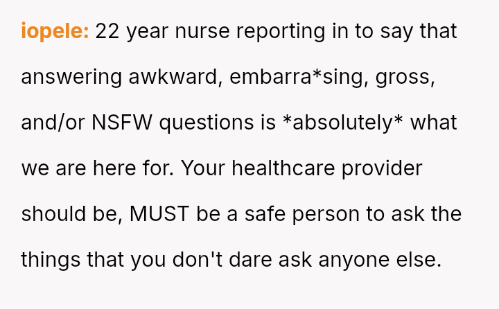 The core question remains whether a patient's right to obtain specific medical guidance outweighs a healthcare worker's personal discomfort or perceived boundary regarding sensitive topics.