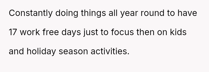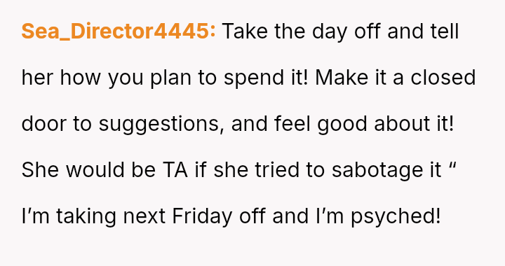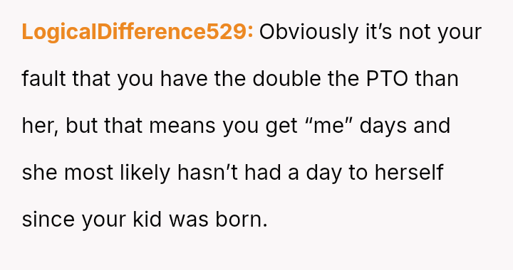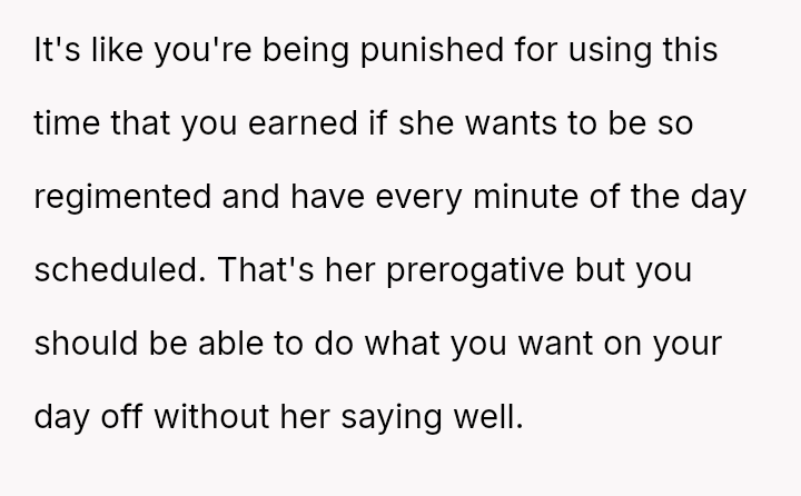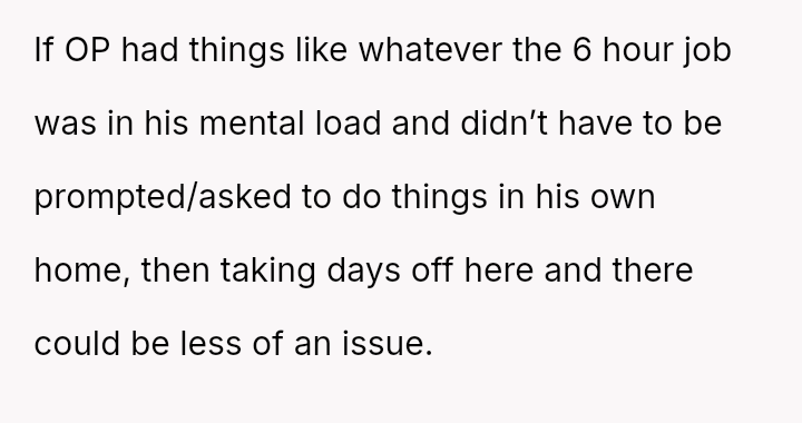 The central conflict revolves around the OP feeling ent*tled to use his earned personal time, while his wife appears to treat those days as flexible childcare or household workdays, leading to resentment when her plans are ignored.