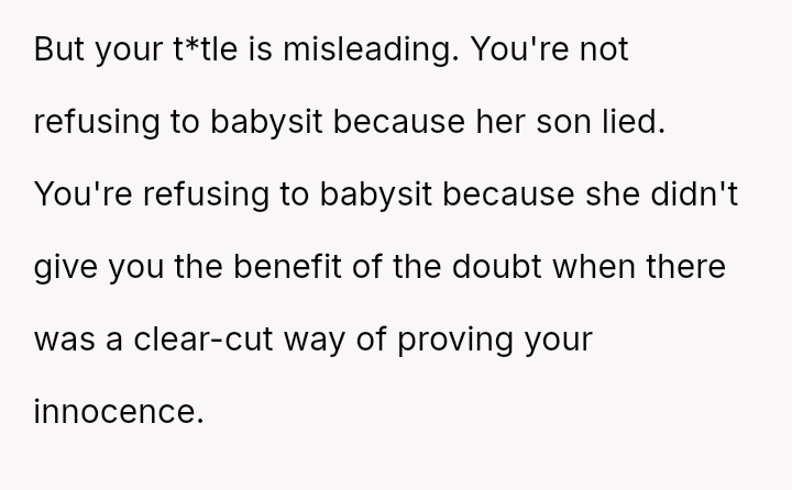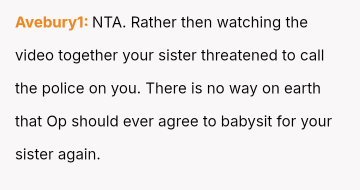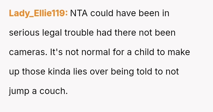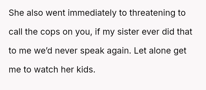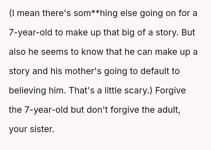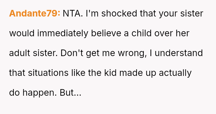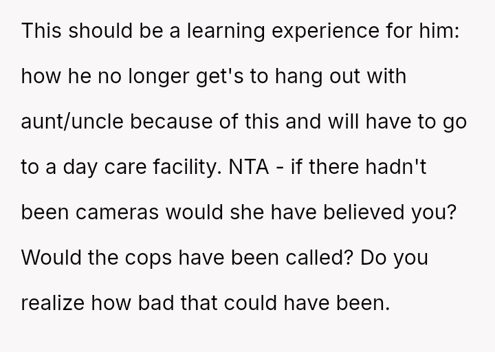 While the sister later apologized after reviewing security footage confirmed the lie, the OP felt the incident—and the potential legal ramifications—was too serious to overlook, resulting in the termination of their free childcare services.