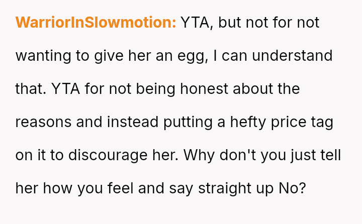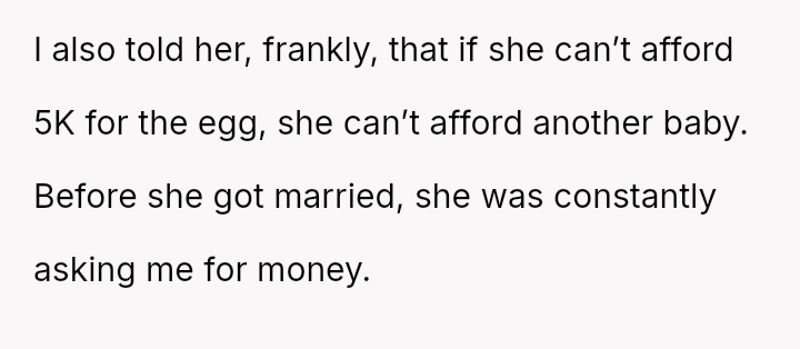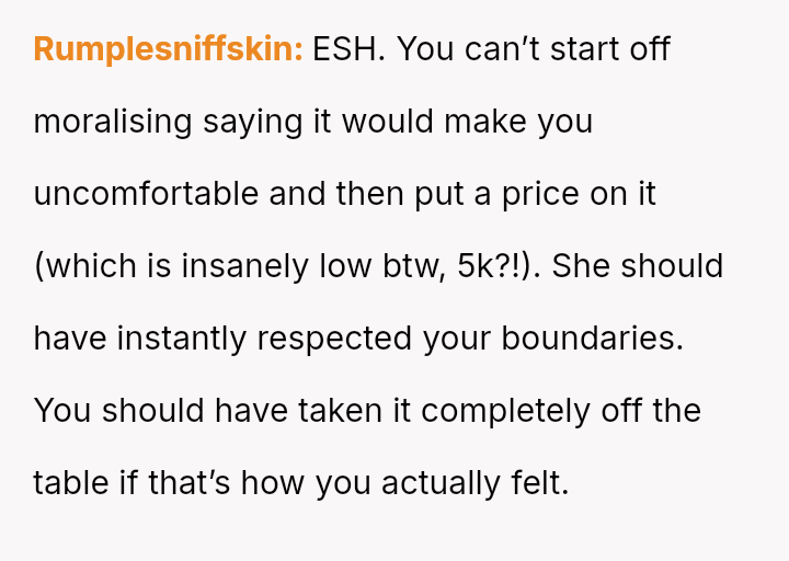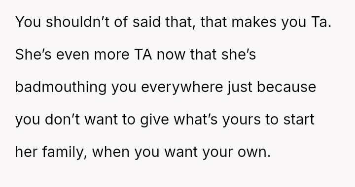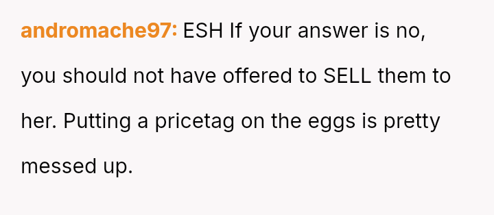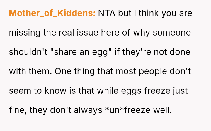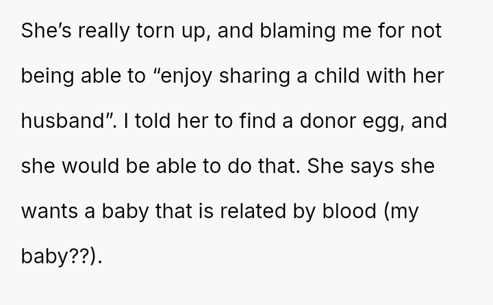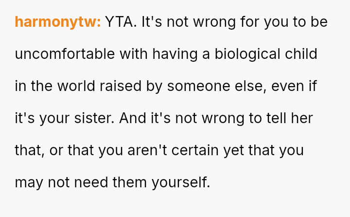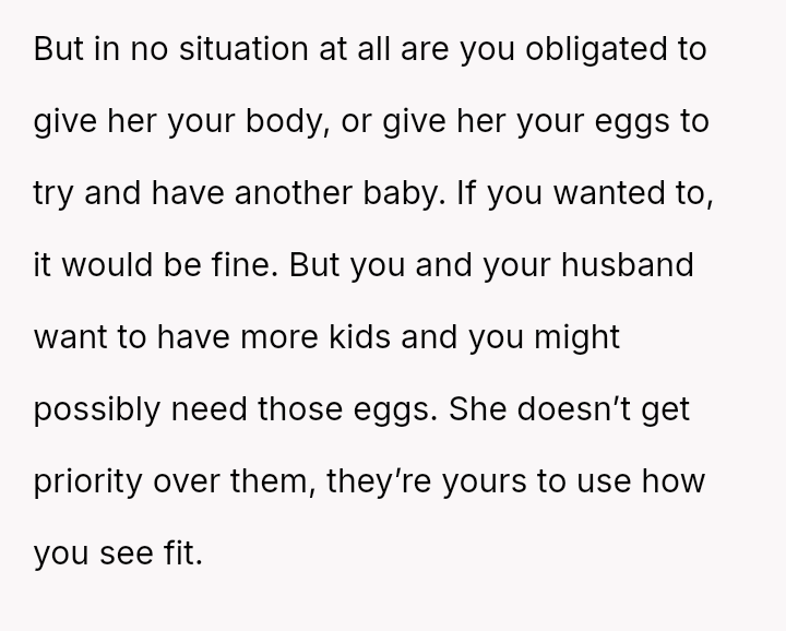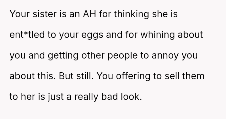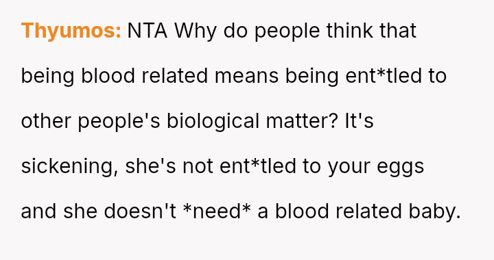 Is the OP justified in refusing to share their personal, stored reproductive material without significant compensation, even when faced with familial shaming and claims that they are responsible for their sister's potential future marital ins**bility, or does the ethical obligation to a*sist a close relative in starting a family outweigh personal autonomy in this specific scenario?