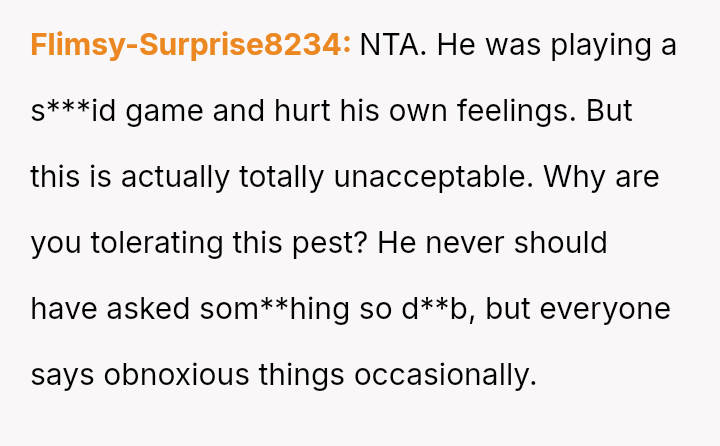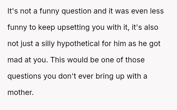 The original poster (OP) is experiencing deep distress and guilt after reluctantly answering a recurring, highly stressful hypothetical question posed by her husband.