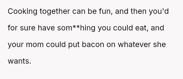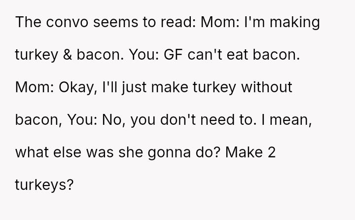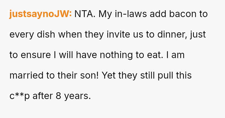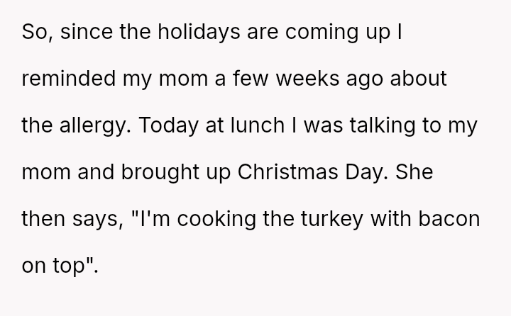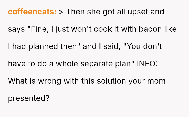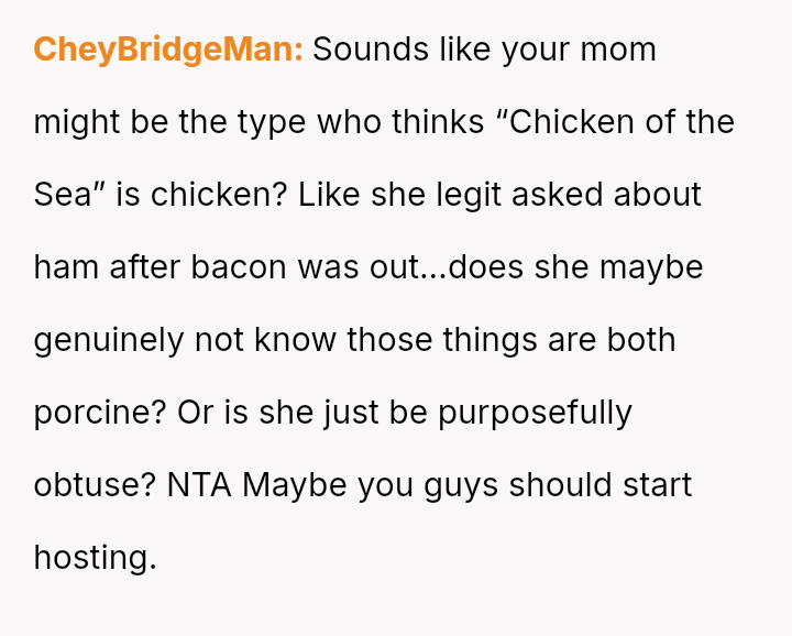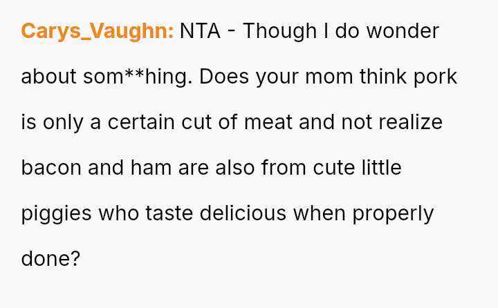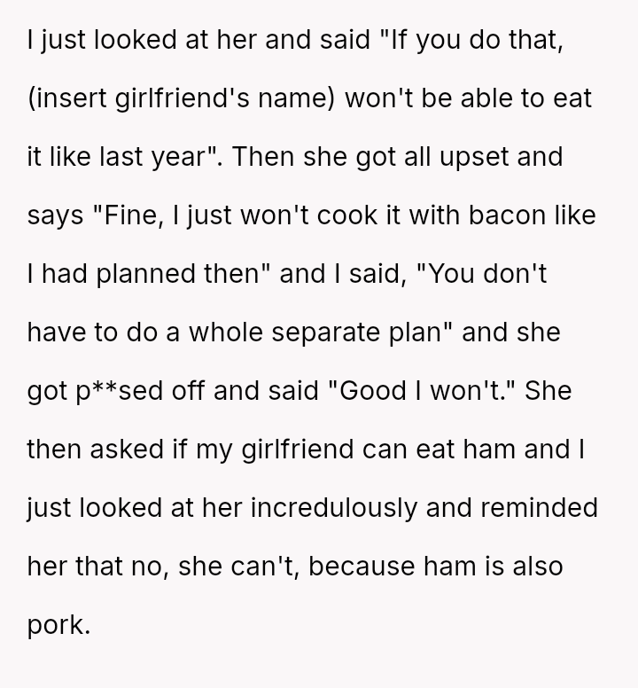 Is the OP justified in becoming angry when their mother intentionally planned to include pork products again despite prior incidents, or is the mother's reaction to change her plans a reasonable response to feeling controlled or criticized?