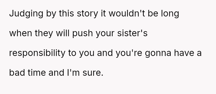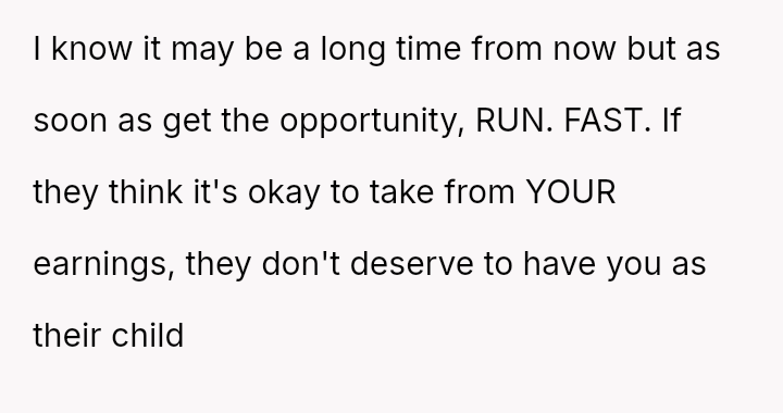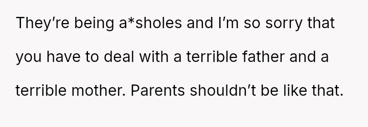 Her parents justified their actions as necessary to keep peace and manage their limited resources, but to her, it felt like her dreams were being trampled in favor of others’ needs.