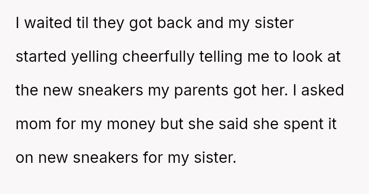 But when the day arrived, her heart shattered as she realized her parents had taken that hard-earned savings away, spending it on new sneakers for her autistic sister instead.