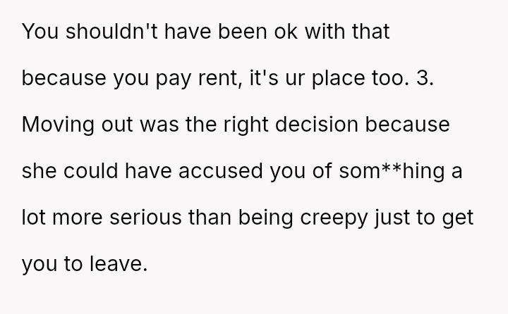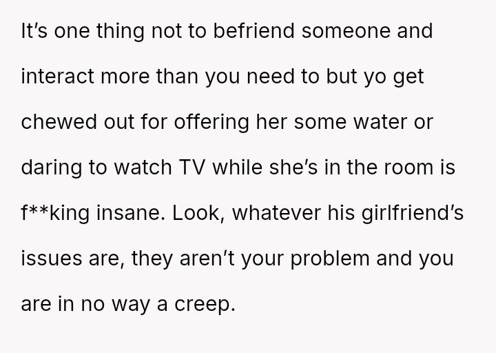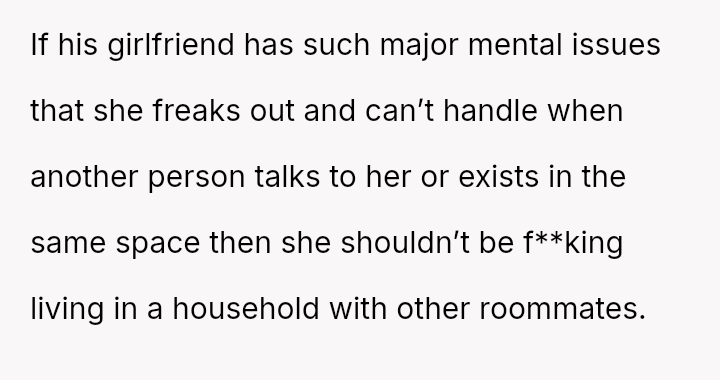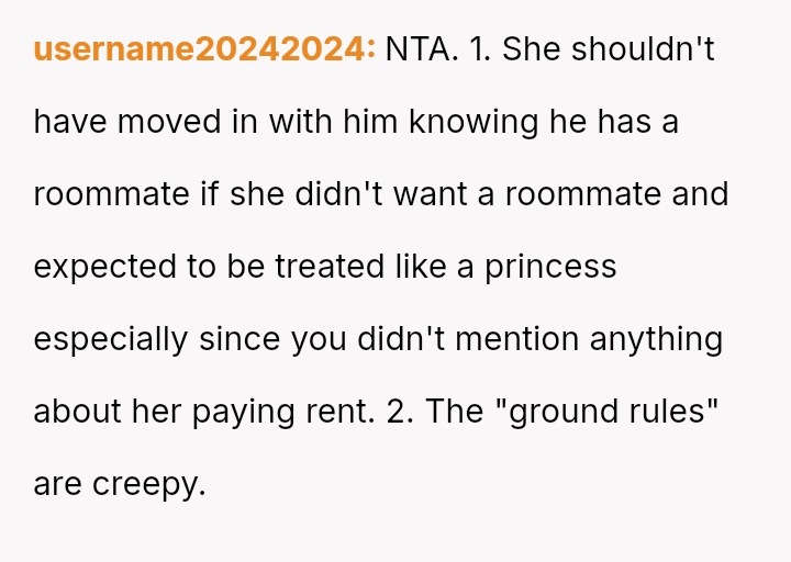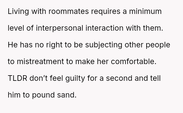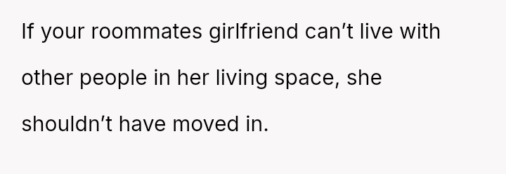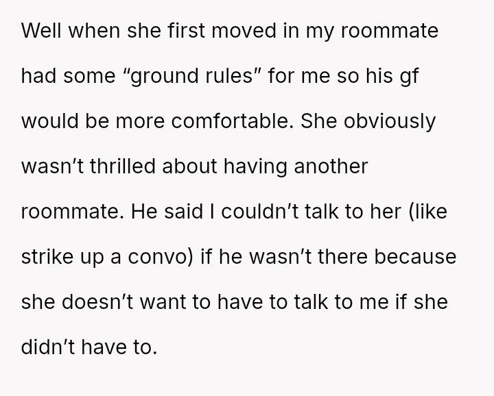 The original poster (OP) is experiencing significant conflict stemming from agreeing to extremely restrictive living conditions imposed by a roommate to accommodate the roommate's girlfriend, who has past trauma.