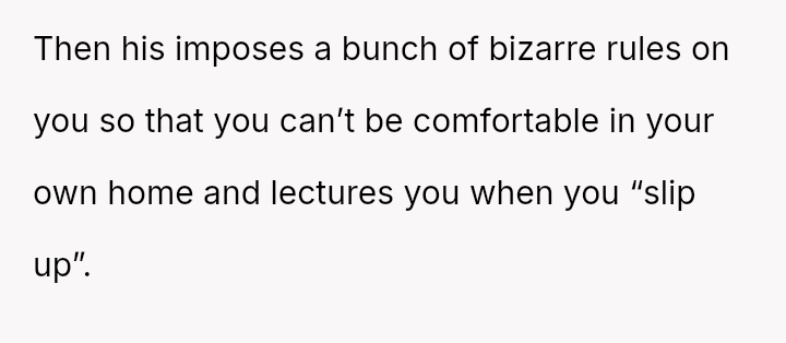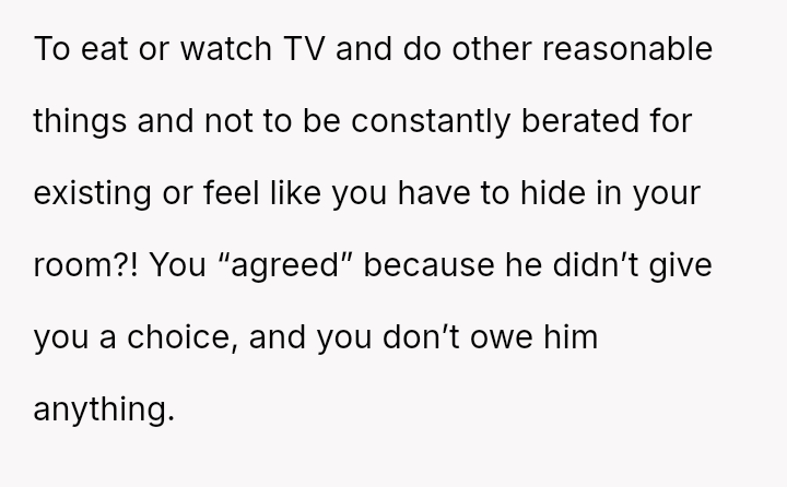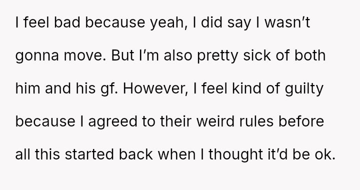 Given the extreme restrictions placed on the OP's daily interactions and use of common spaces, was the OP morally obligated to adhere to the restrictive verbal agreement, or did the imposition of emotionally damaging rules void any prior commitment?