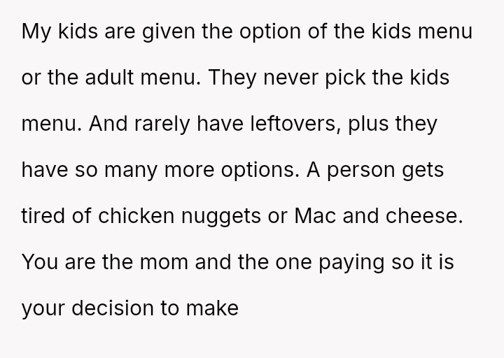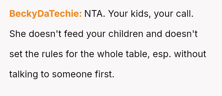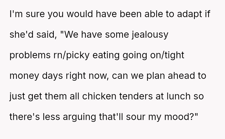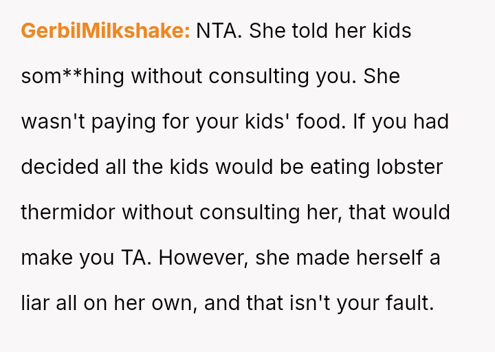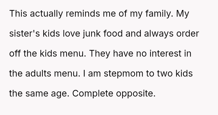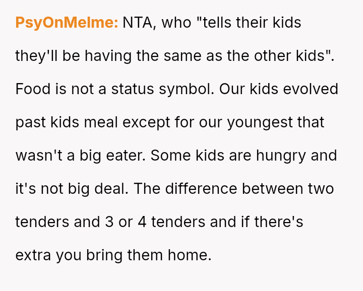 Given the clash between the OP's need to ensure their children were adequately fed and the SIL's desire to maintain a unified front among the children, the central question remains: Does a relative have the right to dictate the meal choices for another person's children in a public setting, even if they attempt to set a precedent for the entire group?