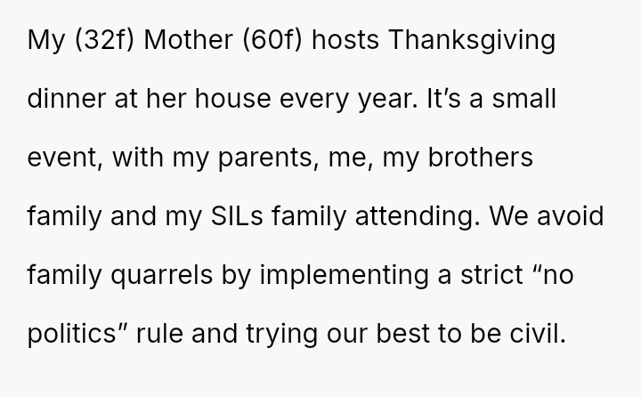 The rare gathering is suffused with an unspoken tension, as each member navigates the complex dance of civility under a strict “no politics” rule, hoping to avoid the cracks that threaten to shatter the fragile peace.
