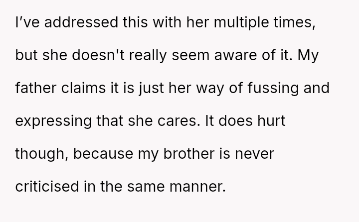 Amid this uneasy truce, a daughter carries the invisible weight of her mother’s relentless, cu***ng critiques—pa*sive-aggressive barbs that belie a twisted version of love and care.