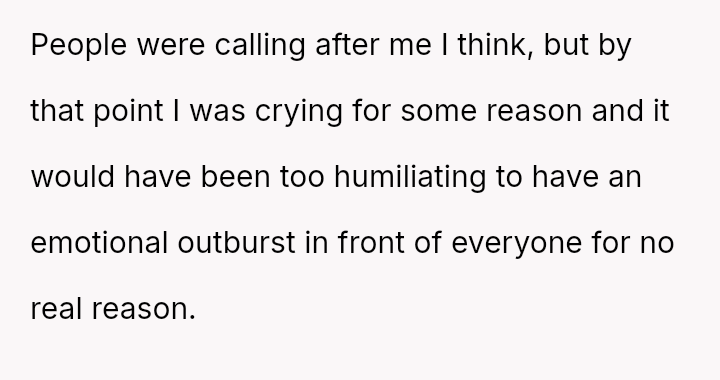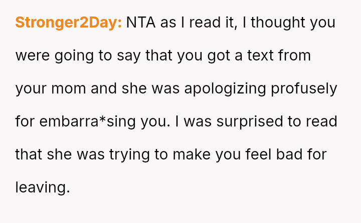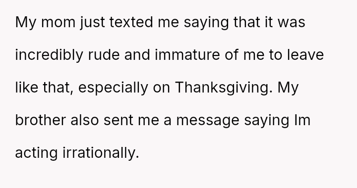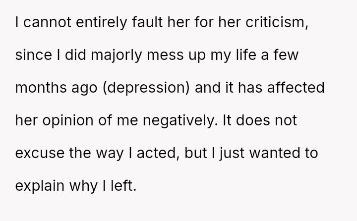 The OP's decision to leave abruptly stemmed from a culmination of these slights, leading to feelings of humiliation and regret over abandoning the rare family gathering.