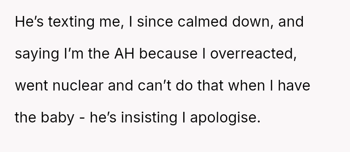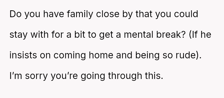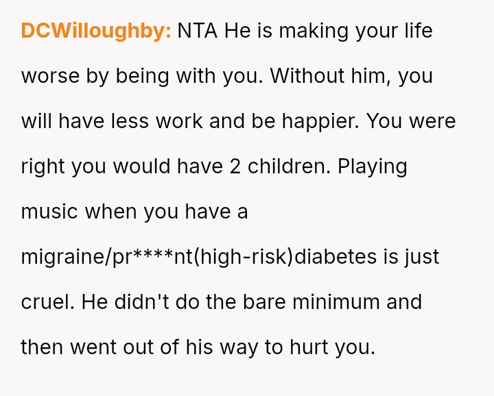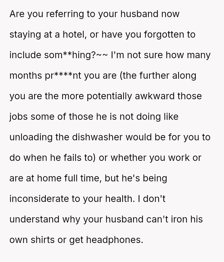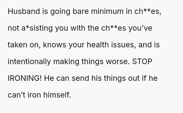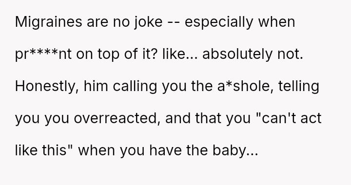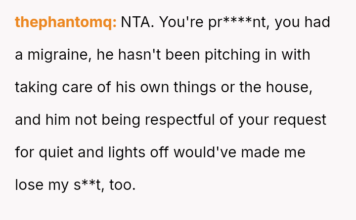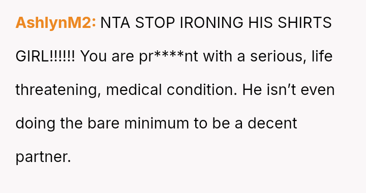 The original poster (OP) expressed extreme frustration due to feeling unsupported in managing household tasks and health needs while pr****nt, leading to an immediate, high-stakes reaction where they demanded their husband leave.