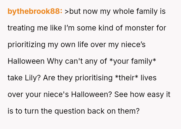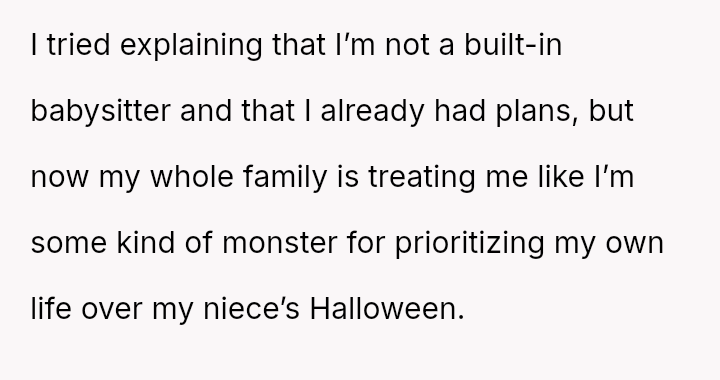 When her sister demands last-minute childcare on Halloween, expecting her to cancel cherished plans, the fragile balance shatters.