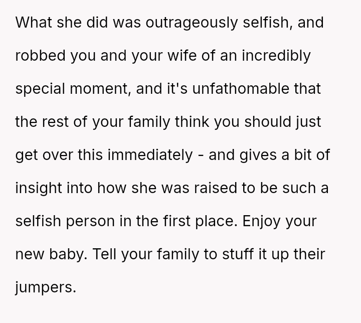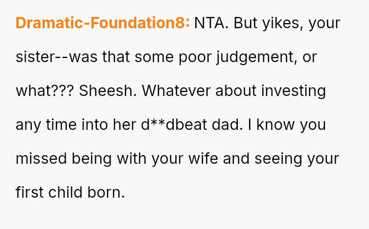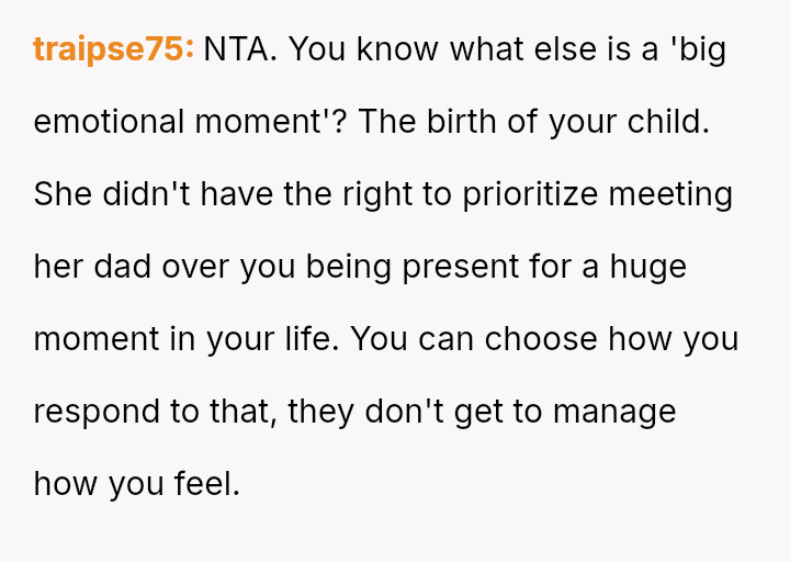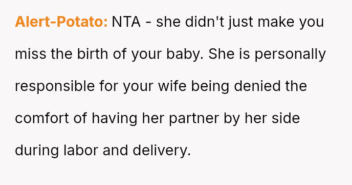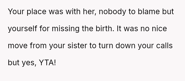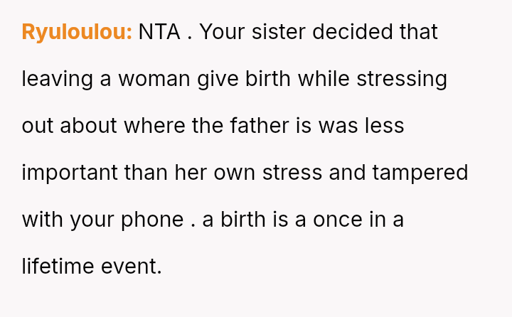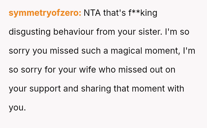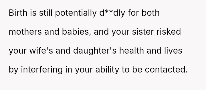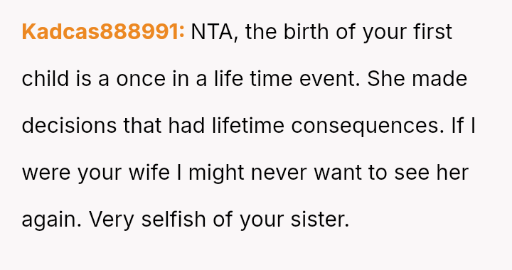 The original poster is deeply conflicted, grappling with intense anger and the devastation of missing his first child's birth due to his sister's actions.