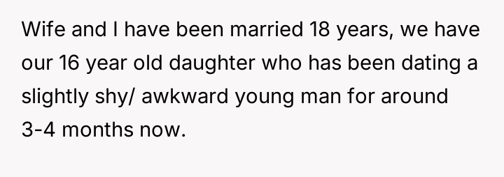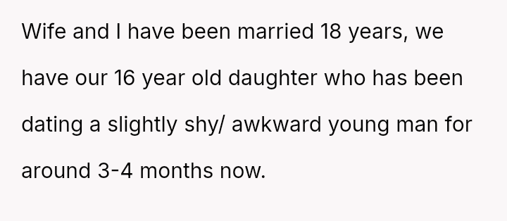 Their sixteen-year-old’s shy new boyfriend, visibly nervous and humble, seemed worlds apart from the confident young woman they had helped shape, his quiet admiration tinged with disbelief that she could truly want him.