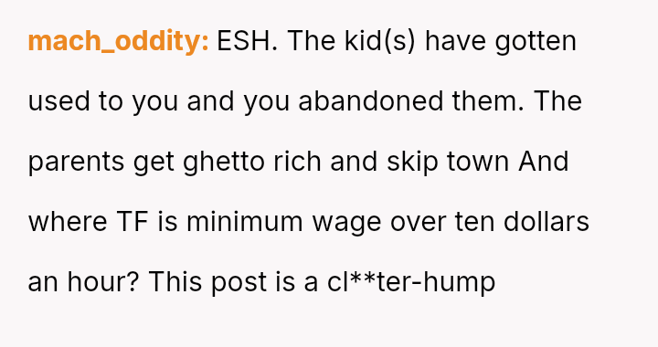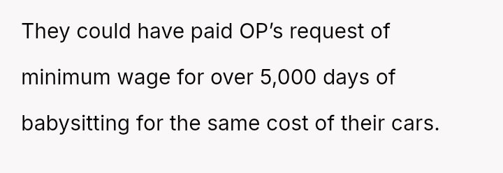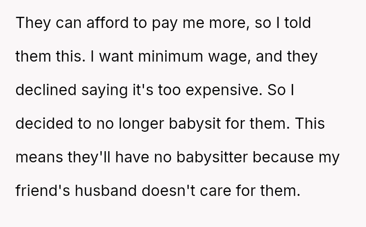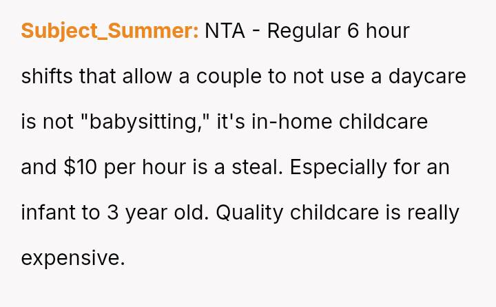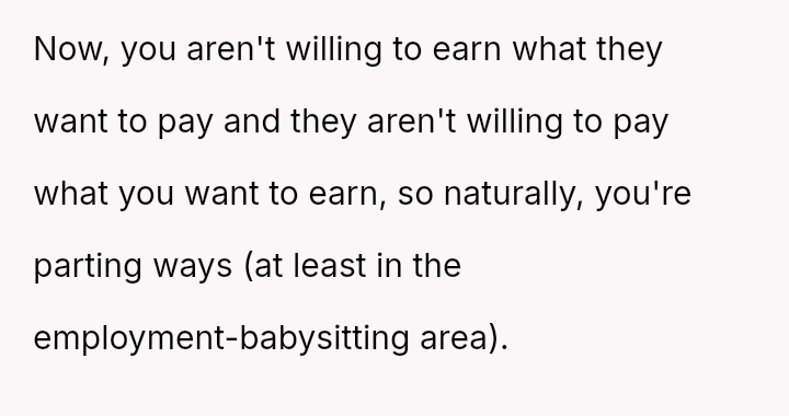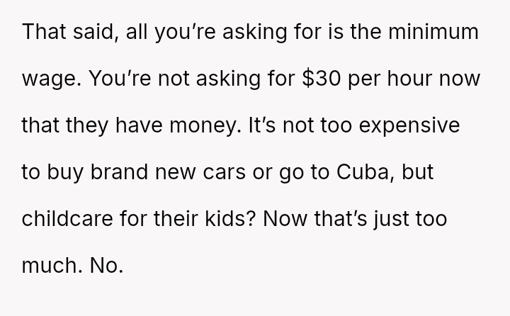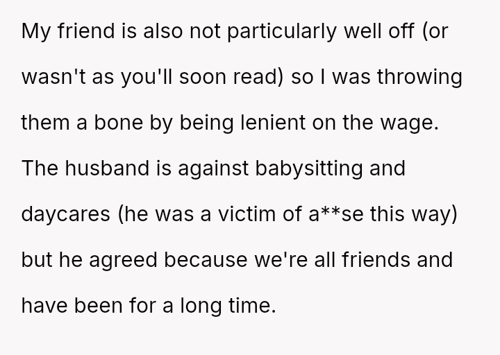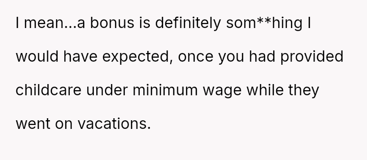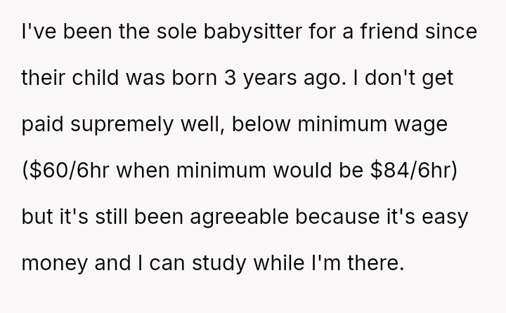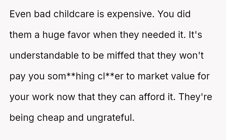 The original poster (OP) finds themselves in a difficult position, having provided reliable, underpaid childcare for three years.