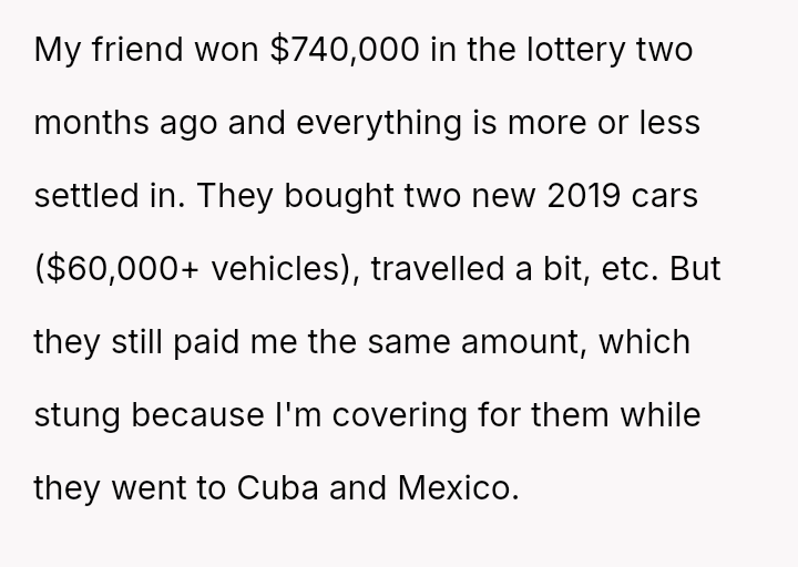But when fortune struck and the lottery winnings transformed her friend's life, the stark truth of her own worth became undeniable.