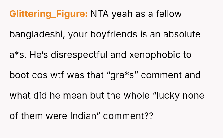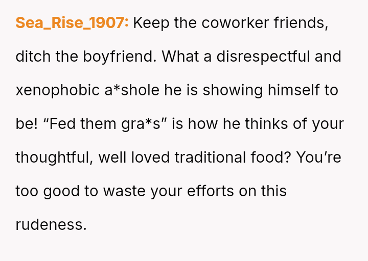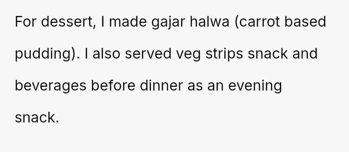 The Original Poster (OP) invested significant effort and care into preparing a homemade, traditional South Asian meal for her boyfriend's coworkers, aiming to share her culture and cooking sk**ls.