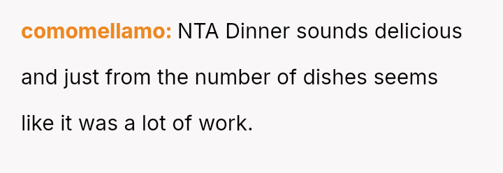 The central conflict arises because the boyfriend felt the effort and the resulting dishes were substandard for a celebratory dinner, suggesting they should have gone to a restaurant instead, which deeply hurt the OP given her intentions and labor.