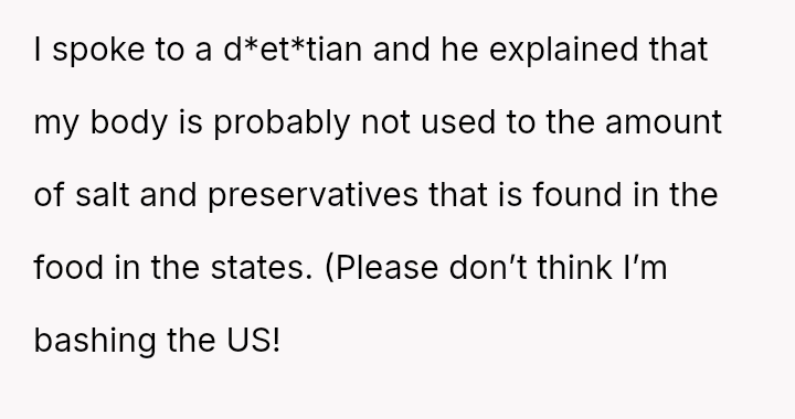 The original poster (OP) is facing a significant personal health challenge requiring strict d*etary changes after moving to a new country.