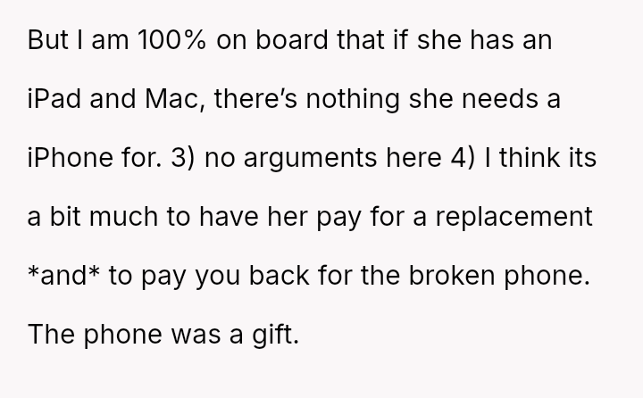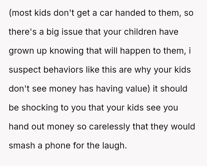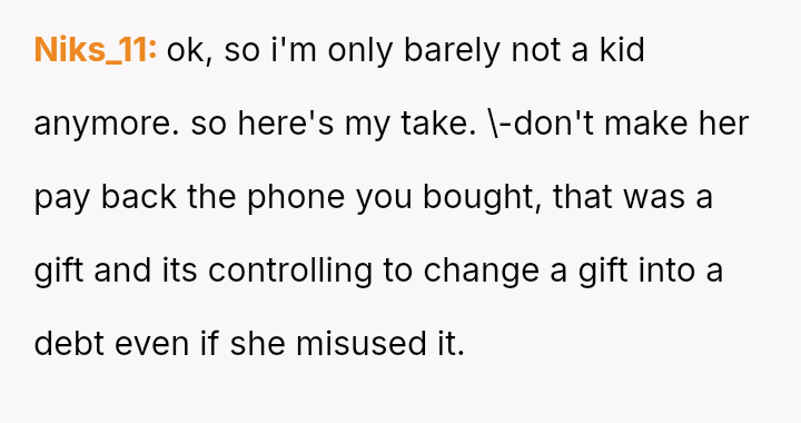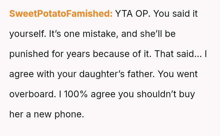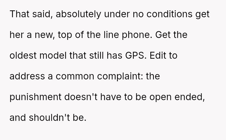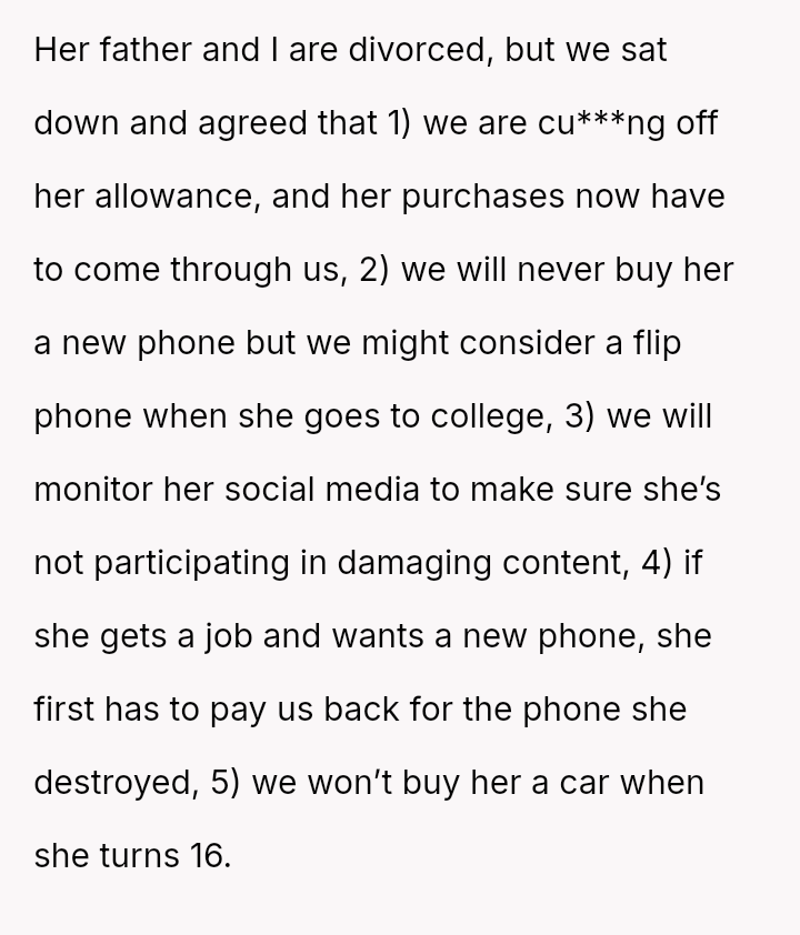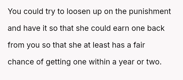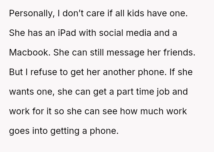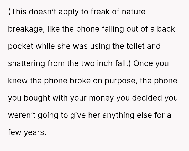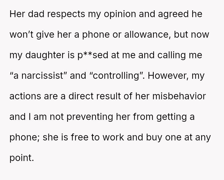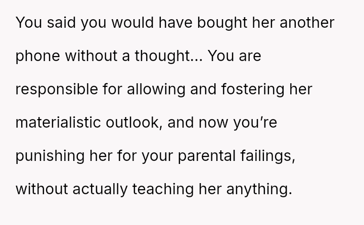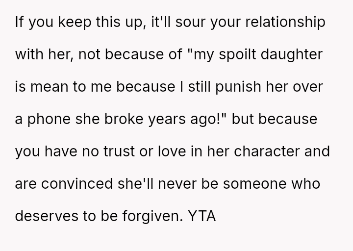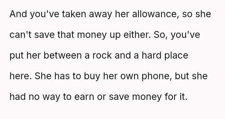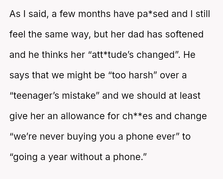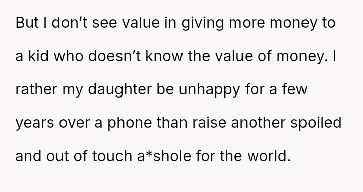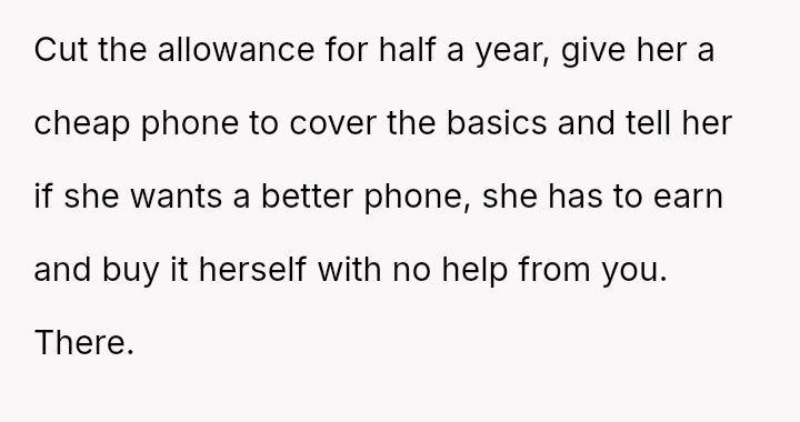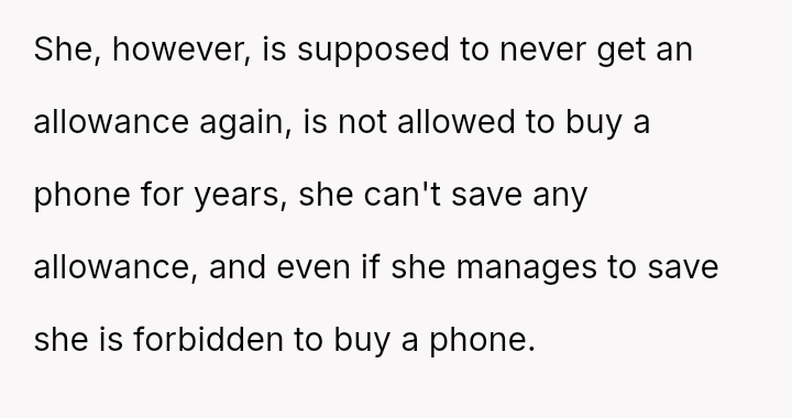 Given the daughter has other devices for communication, is the parents' collective decision to withhold a smartphone and deny allowance for several years a necessary, justified consequence for demonstrating a lack of grat*tude and respect, or does this severe, long-term penalty unfairly label a teenage mistake as a permanent character flaw?