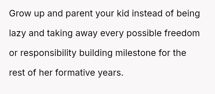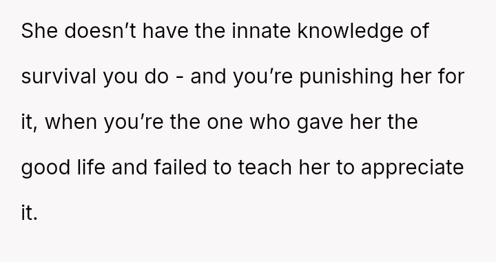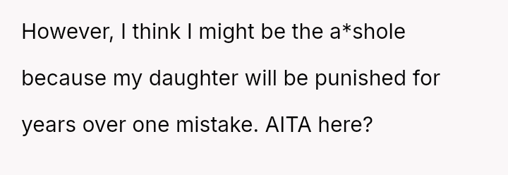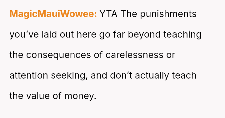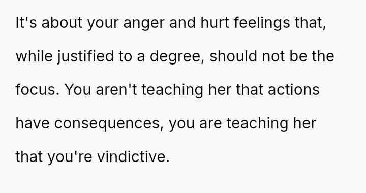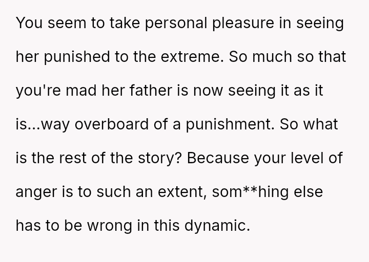 The central conflict lies between the parents' desire to teach a harsh lesson about ent*tlement and the daughter's reaction, which labels the resulting consequences as controlling and narcissistic punishment.