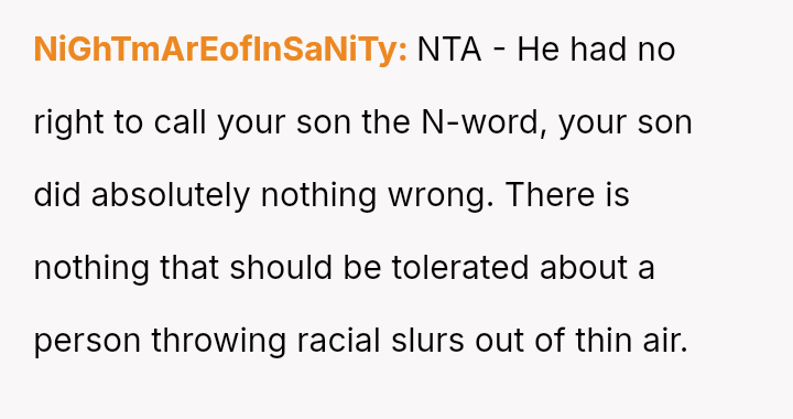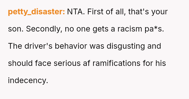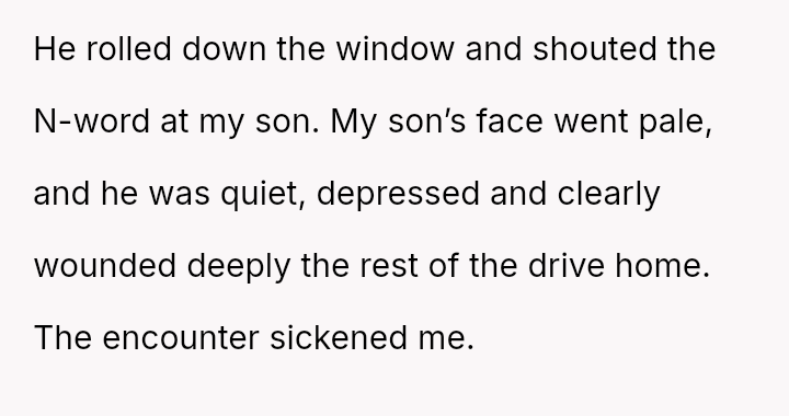The original poster (OP) is struggling with the emotional fallout of witnessing a deeply r***st attack against their biracial son and feels compelled to seek justice.