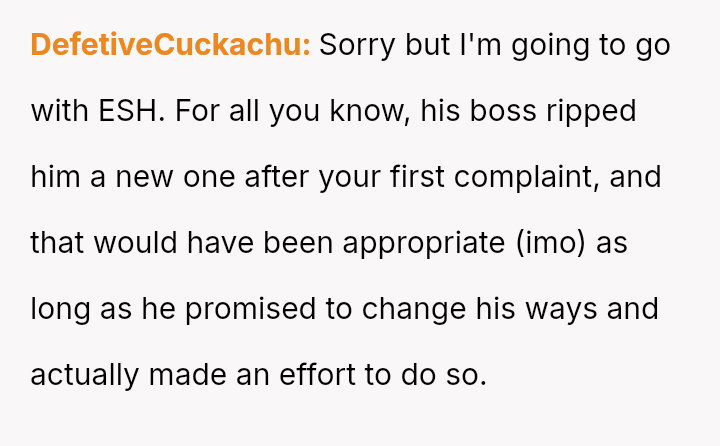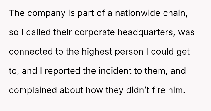 Was the OP justified in escalating their complaint to corporate headquarters after the local branch failed to deliver a satisfactory outcome, or did reporting the employee a second time cross the line into being vindictive or overzealous?
