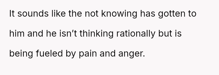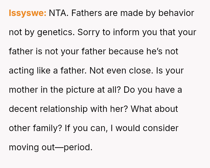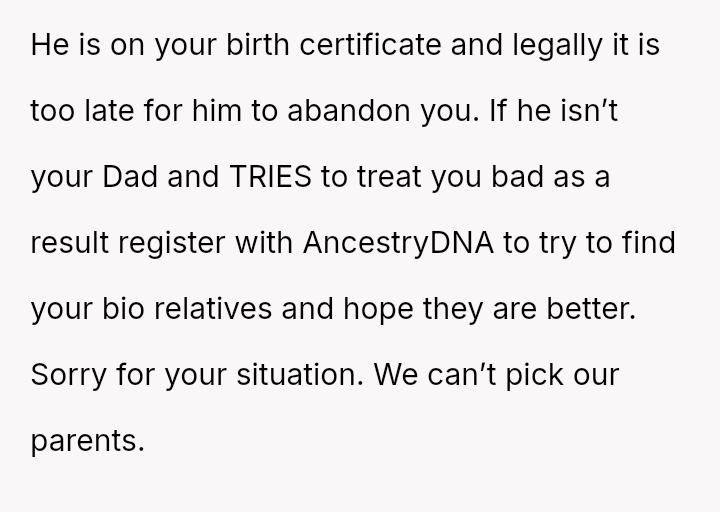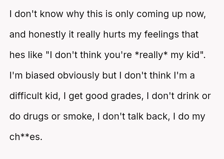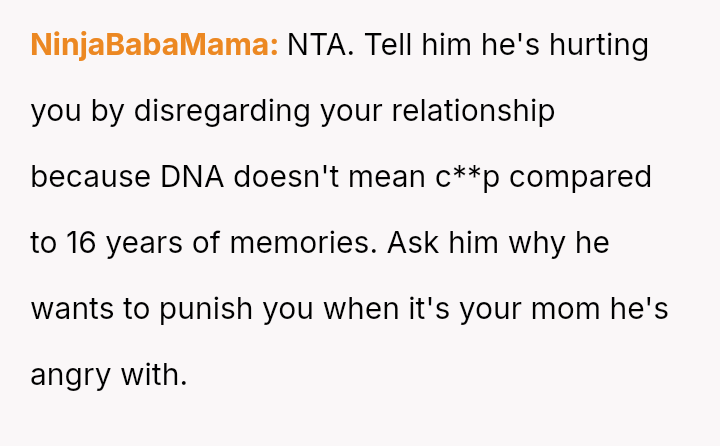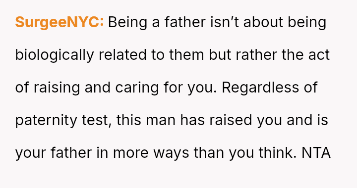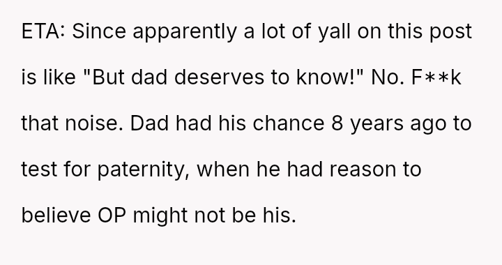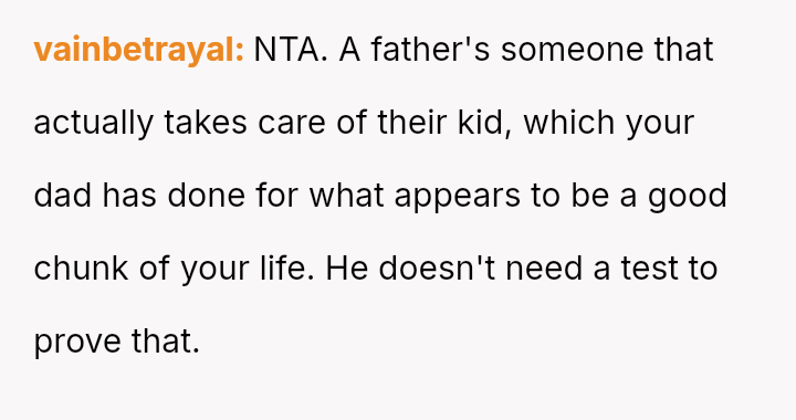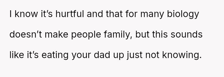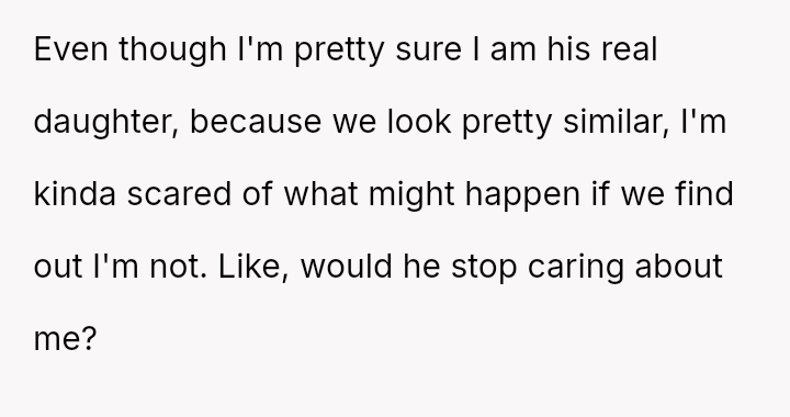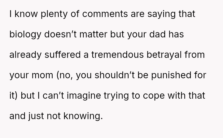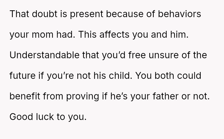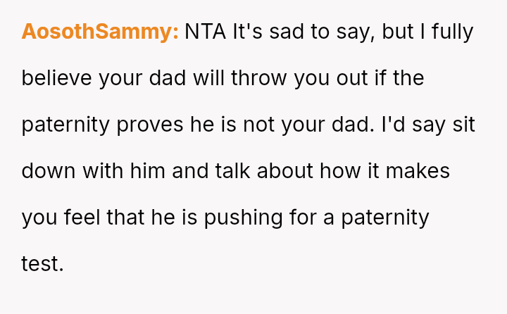 The original poster (OP) is facing deep emotional distress as their father demands a paternity test based on long-held sus**cions related to the mother's past in***elity.