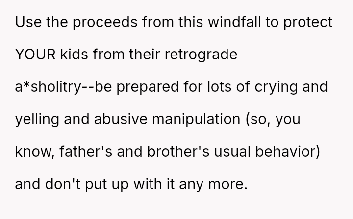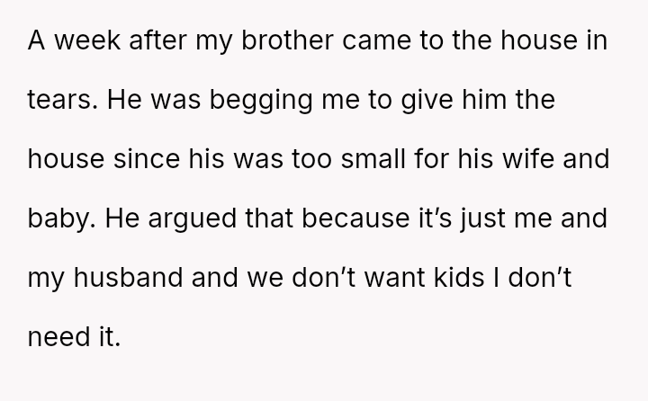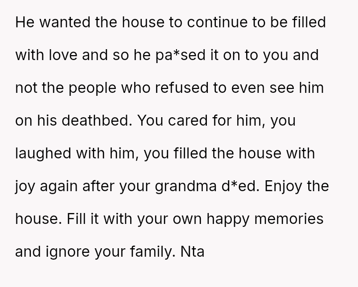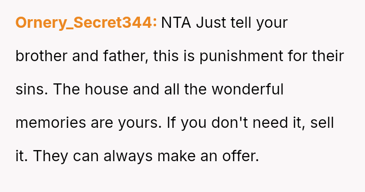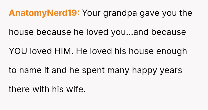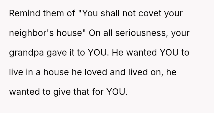 Given that the OP acknowledges they do not strictly need the property but recognizes their grandfather's potential wishes, the central question remains: Should the OP honor the terms of the will and their grandfather's implied wishes by keeping the house, or should they yield to their brother's urgent need and their family's desire for reconciliation by transferring ownership?