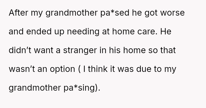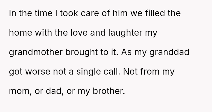 Her grandfather’s deteriorating health demanded care, yet her parents’ cruel judgment and callousness threatened to tear him away from the only place—and people—that gave him peace.