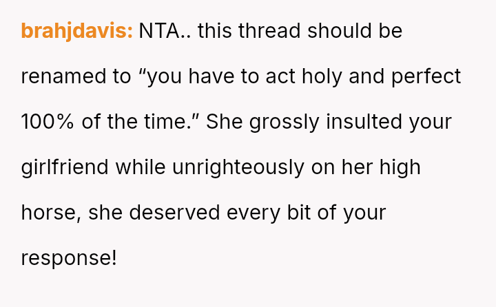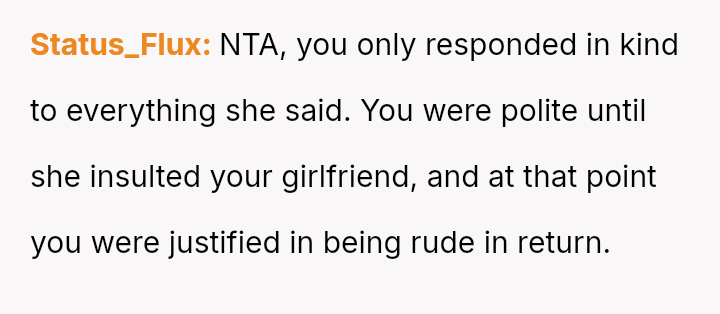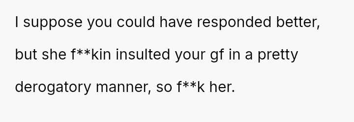 The debate centers on whether the OP was justified in responding with equally severe insults after being provoked, or if his defense of his girlfriend warranted a more measured, non-insulting response.