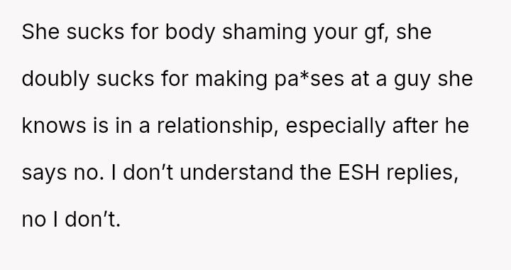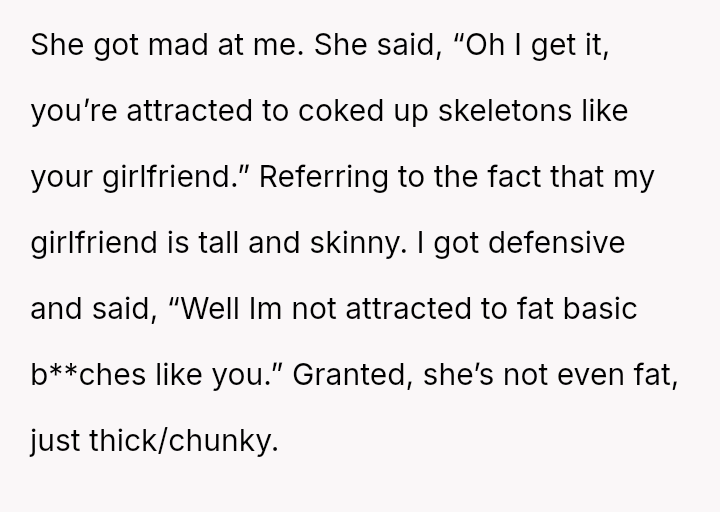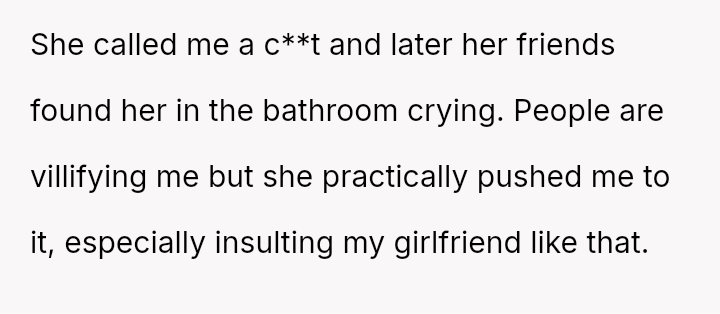 The core conflict arises from the OP's defense of his relationship and his subsequent harsh response to the friend's provocative comments, leading to emotional distress for her and social condemnation for him.