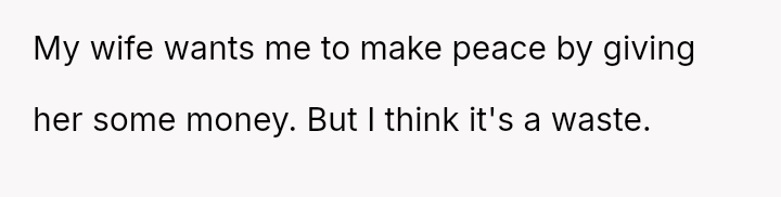 His wife, however, feels compelled to mediate, suggesting that providing a smaller amount of money would ease the tension, even if the father disagrees with his daughter's choices.