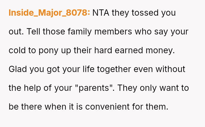 Is the OP justified in withholding financial a*sistance as a direct consequence of their parents' past action of immediate eviction, or is the moral obligation of family support in times of crisis more important than rectifying historical grievances?