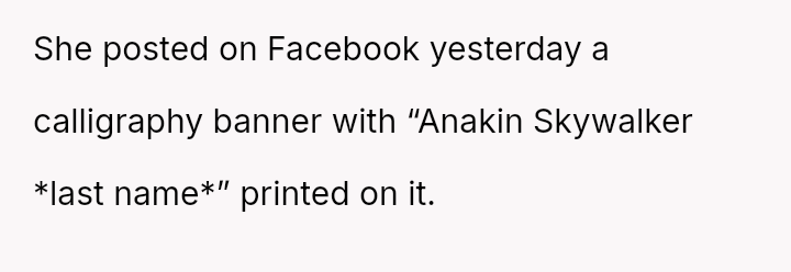 Caught between youthful rebellion and the weight of impending parenthood, a young woman boldly chooses a name steeped in pop culture for her unborn child—Anakin Skywalker.