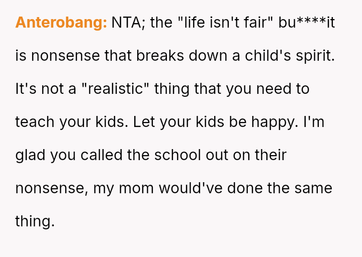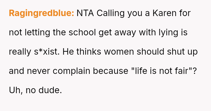 The central conflict involves the OP advocating strongly for their child's emotional well-being against the school's perceived dishonesty and inflexibility, an action their husband criticized as overreaction.