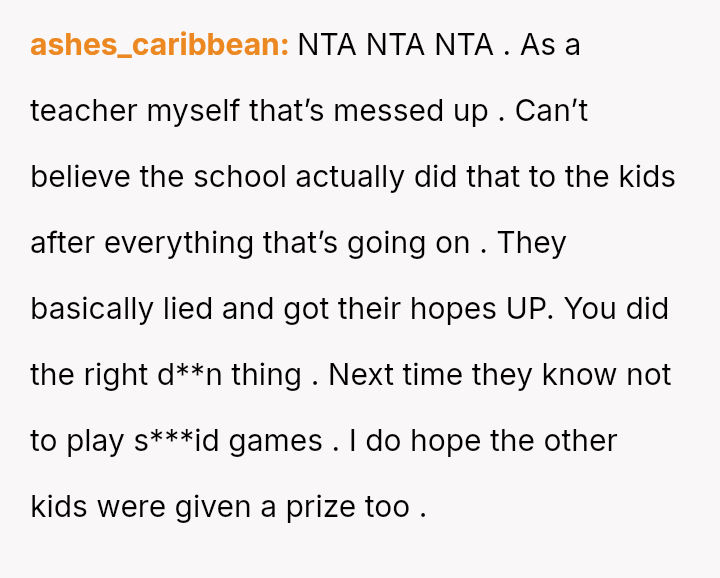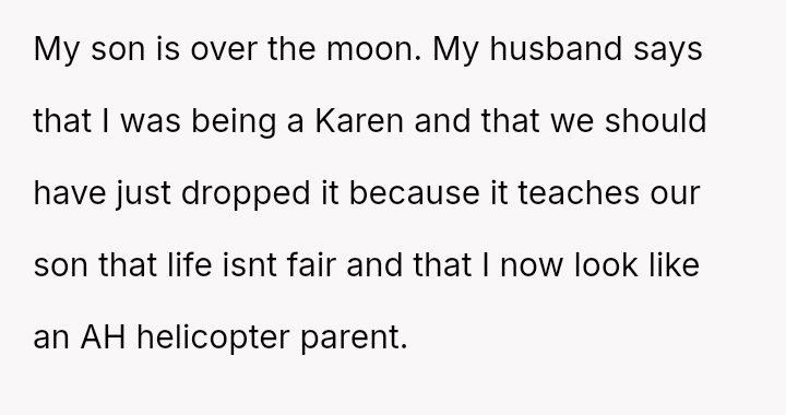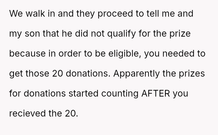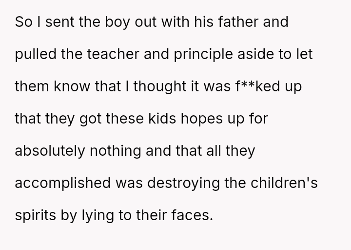 The original poster (OP) experienced significant frustration and anger after the school misrepresented the requirements for a student prize, leading to their son's disappointment.