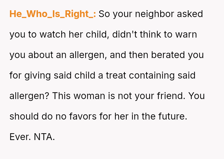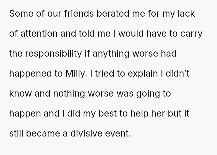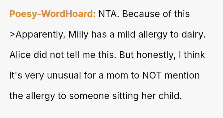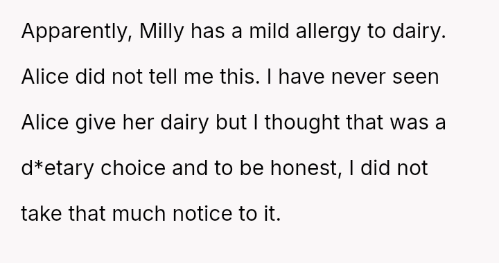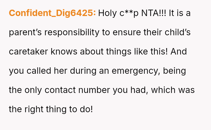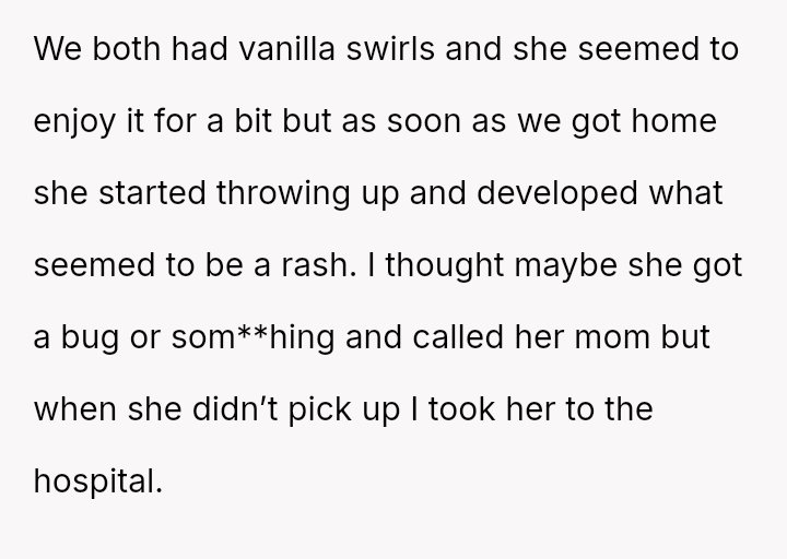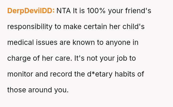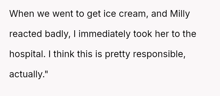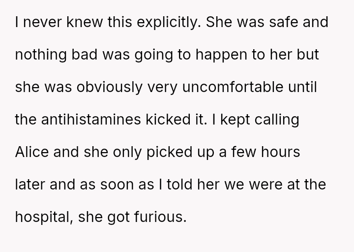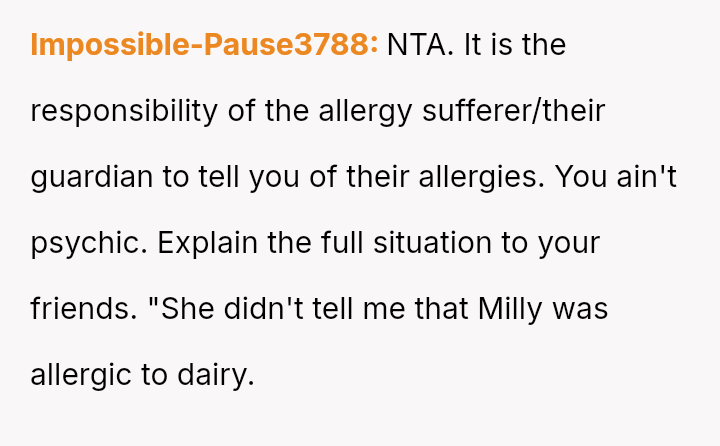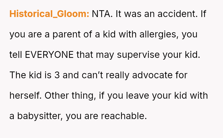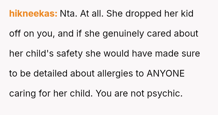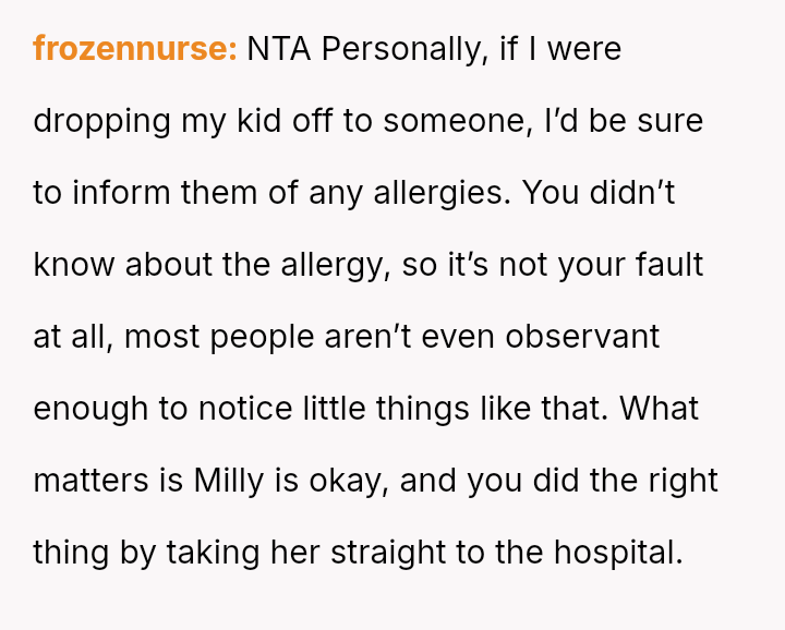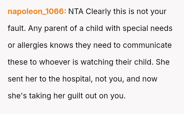 The OP acted quickly to seek medical help, yet the mother blamed the OP entirely, a*serting that the OP should have known about a critical, undisclosed allergy.