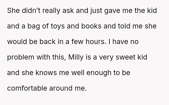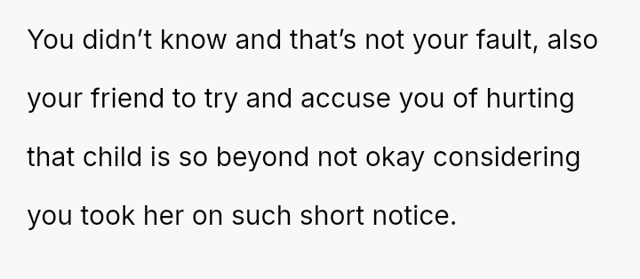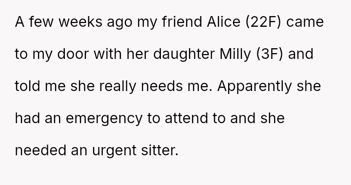 The original poster (OP) faced a crisis when a friend dropped off her child without warning, leading to an unexpected allergic reaction that required hospitalization.